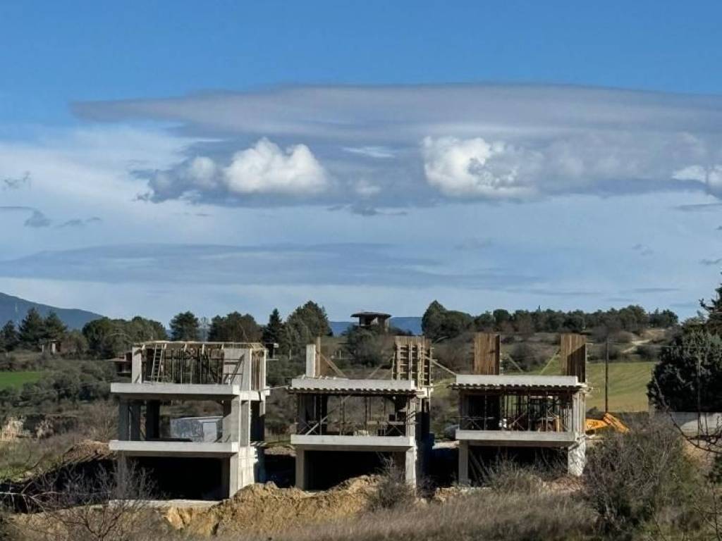 In the beautiful and quiet area of Ano Perea, two luxurious detached houses of 155 sq m are offered with a private plot of 1300 sq m each. Each detached house is designed with a functional layout: - Basement of 60 sq m as an additional living room with bathroom, and with possibilities of utilization as a playroom, storage room, gym, etc. - Upper floor of 60 sq m with spacious areas, which serve as a living room, kitchen, one bedroom & bathroom. - Attic of 35 sq m with two comfortable bedrooms and the main bathroom. Front and back verandas of a total size of 70 sq m with views of the open space and the mountain! For heating, they will have underfloor panels with a heat pump. The houses will be reinforced with insulation throughout their area. Ideal for home ownership or investment, as they cover all daily needs and are at the same time located a short distance by road from the center of Perea. The first phase of construction will be completed by April 2026, and will include the entire exterior. That is, the concrete frame, stone, external insulation and roof. The completion of the construction internally will only be done upon request of the prospective buyer. Prices: - Detached house no. 2 (middle) 200,000€ (permit – only exterior completed) 315,000€ (ready to hand over) - Detached house no. 3 (right) 215,000€ (permit – only exterior completed) 345,000€ (ready to hand over) Current Construction Status - Concrete works: 90% complete - Facade works: 5% complete - By 20.03.2026: All concrete and brick works will be completed. Facade works and mechanical works will continue afterwards. For any further information, contact the office!