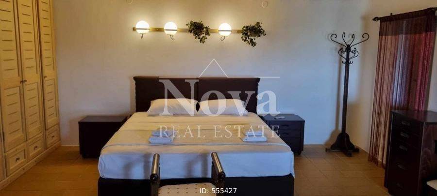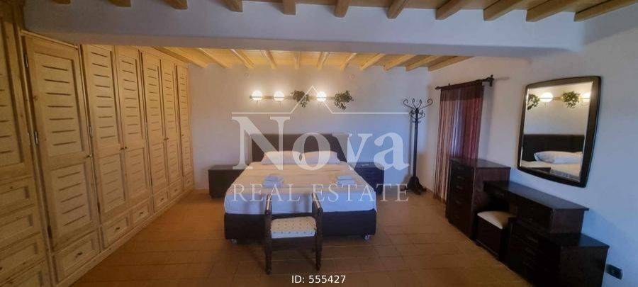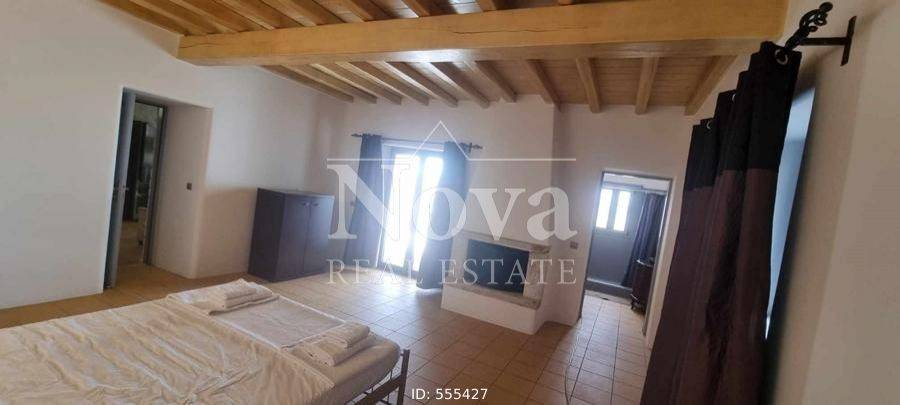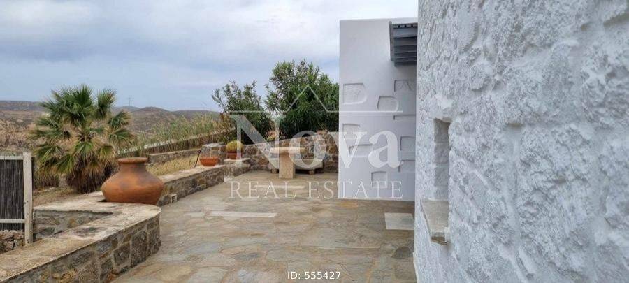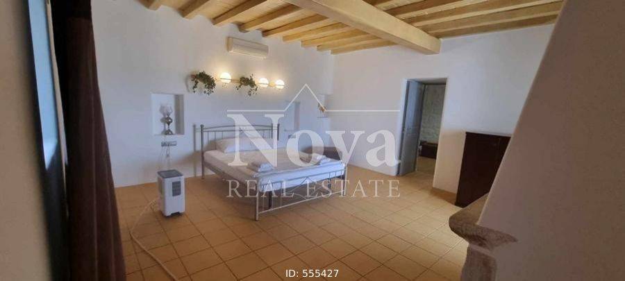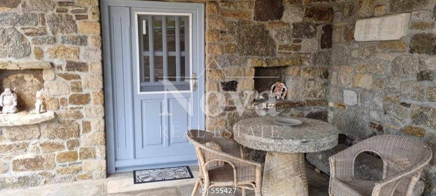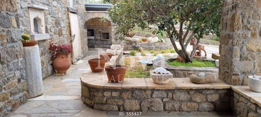 A beautiful stone-built traditional house of 140 sq.m. on a 4-acre plot, with fruit trees and olive trees, its own borehole, fully fenced. It consists of a large living room, open plan with the kitchen, 2 master bedrooms, 2 bathrooms, 2 fireplaces in the living room and in one bedroom, and verandas around the perimeter. It has a 100 sq.m. storage room connected to the main house that can be converted into a main residence, an 80 sq.m. storage room, a 46 sq.m. parking area, and a 17 sq.m. enclosed structure that houses the well. It is located 11 minutes from the Merchia Beach and 13 minutes from the area of Chora.