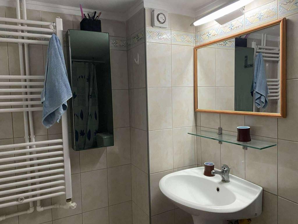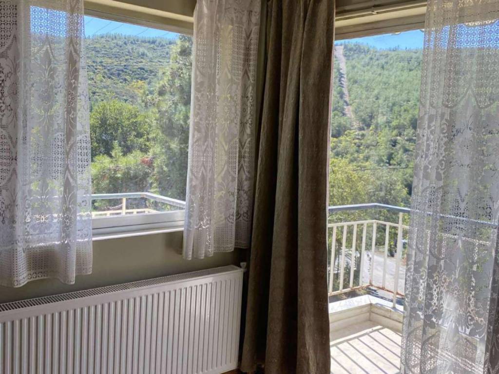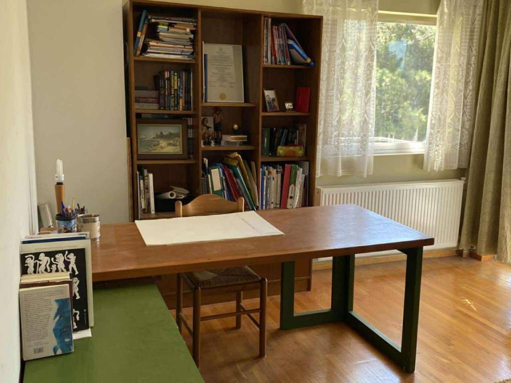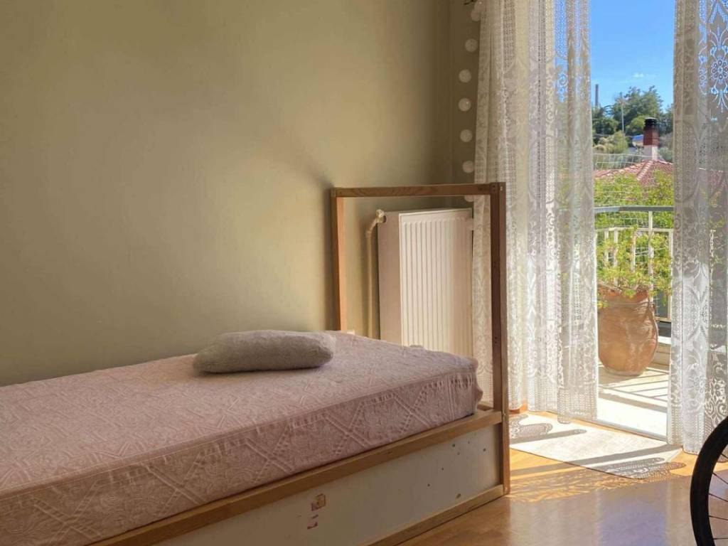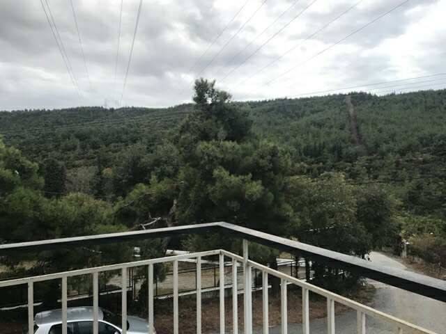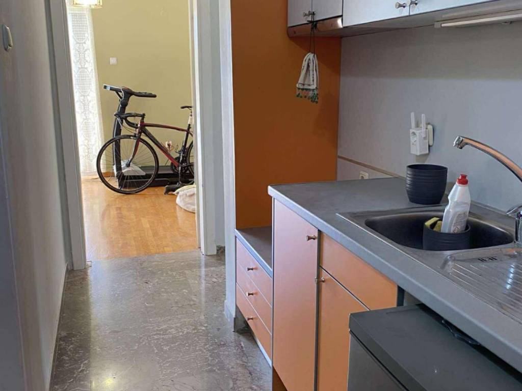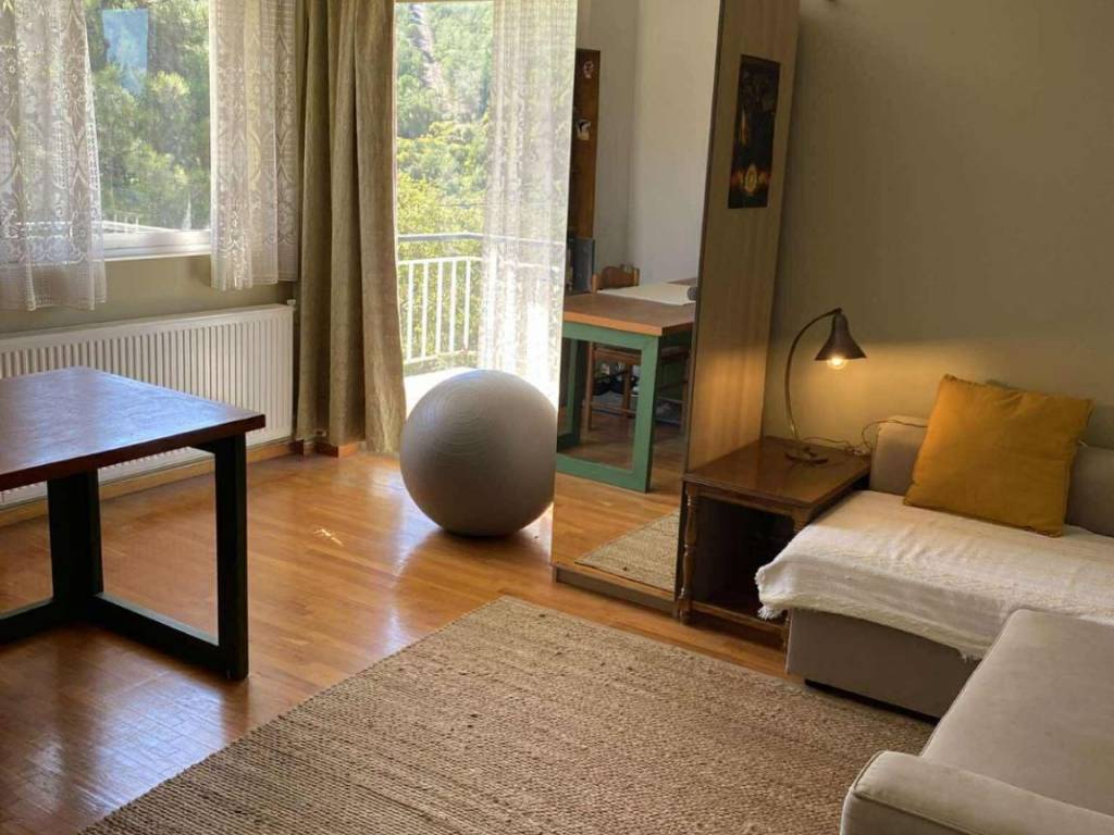 Apartment from a private owner in a quiet, family-friendly building, corner unit, with east-south orientation, surrounded by greenery. Easy parking, with a view. 1 minute from a bus stop. Easy access to the ring road and to Papageorgiou and Papanikolaou hospitals. 15 minutes on foot or 3 minutes by car to organized shopping areas in Pefka or Asvestochori (supermarket, pharmacy, café, gym, etc.). The apartment is rented partially furnished: the bedroom has a double wardrobe (no bed included). The living room features a corner sofa that converts into a double bed for guests, a large desk, a bookshelf, and a large TV unit with storage space. It includes a small kitchenette, equipped with a low stainless steel refrigerator and a small oven for cooking. The bathroom has a bathtub and ample storage space. There is no washing machine. The entrance has a security door and a double wardrobe for coats, etc. The apartment has two balconies, one facing east and one facing south. The south-facing balcony has a shading awning. It has older, first-generation aluminum window frames. Wooden flooring in the main areas, and marble in the entrance and kitchenette. There is a shared garden. The price includes all fixed expenses (building maintenance fees, electricity, water, internet), except for natural gas, which is used for heating and hot water. The natural gas supply is autonomous.