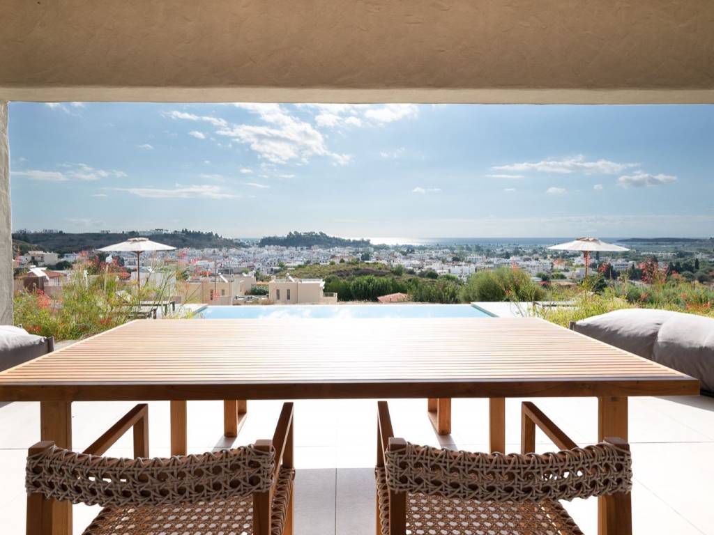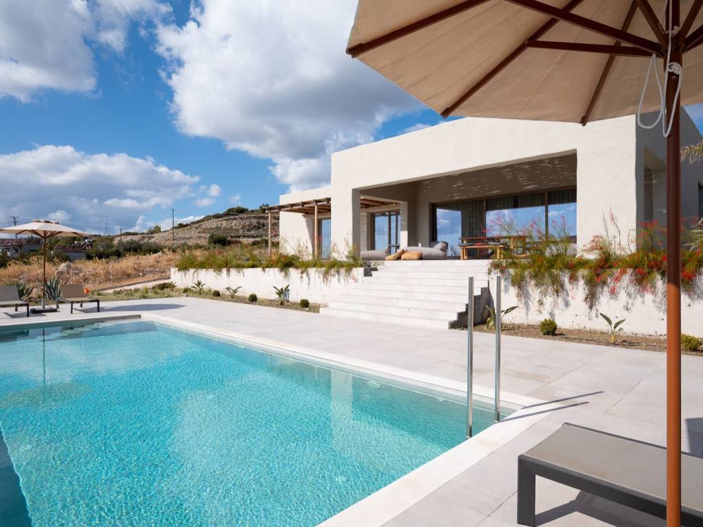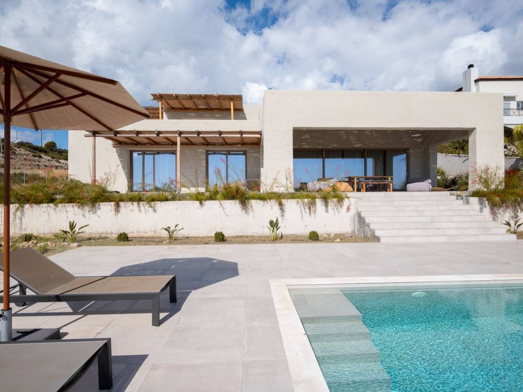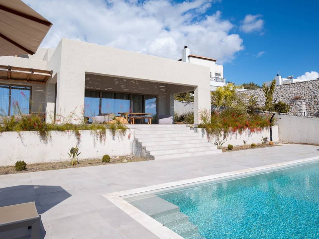 Perched elegantly on the serene slopes of Afandou, this newly completed villa represents the epitome of refined Mediterranean living — a perfect fusion of timeless elegance, architectural excellence, and modern comfort. Its elevated location ensures uninterrupted panoramic views over the turquoise sea and the lush natural landscape, offering both tranquility and prestige. Designed with meticulous attention to detail, the villa blends contemporary lines with traditional island elements, harmonizing perfectly with its natural surroundings. Expansive glass openings flood the interiors with daylight, creating a seamless connection between the inside and the magnificent outdoor scenery. The interior design showcases premium craftsmanship and top-quality materials throughout. An open-plan living space unites the living, dining, and kitchen areas, creating a sophisticated yet welcoming ambiance. The fully equipped designer kitchen features high-end appliances and ample storage space — ideal for culinary enthusiasts. Three elegant bedrooms, each with an ensuite bathroom, provide private sanctuaries of comfort and style. Additional features include a guest WC, a practical laundry room, and a storage area, ensuring convenience and functionality in every detail. Outdoors, a stunning 55 m² infinity pool appears to blend effortlessly with the horizon, inviting you to relax while enjoying the breathtaking sea views. The surrounding garden and driveway areas are currently being completed, with landscaping works now underway to further enhance the property’s natural beauty and outdoor living appeal. Built with solid stone walls for excellent insulation, the villa guarantees optimal indoor climate conditions all year round. Central air conditioning, electronic locking systems, and private parking for two vehicles add further comfort and security. Sold fully furnished with premium-quality furniture and fittings, this residence is ready to move in and enjoy immediately. This property offers a rare combination of privacy, luxury, and proximity to the sea — a true sanctuary on the slopes of Afandou, designed for those who appreciate craftsmanship, aesthetics, and an uncompromising lifestyle.start enjoying the unparalleled beauty and comfort it offers. Location: The community of Afandou is the centre of the municipality of the same name which also includes Kolymbia and Archipoli. Unique features: The village architecture conforms to typical village style and is named Afandou (which means ‘invisible’) as the actual village could not be seen from the sea by pirates who constantly raided the coasts in the Middle Ages. The beach of Afandou is made up of tiny pebbles with crystal clear waters and is long enough for plenty of privacy. The 18 hole golf course of Afandou, designed by British golf course architect, Donald Harradine, can also be found here. Accessibility: A regular bus service and a 30 minute drive from Rhodes town. Investment potential: A huge, brand new residential project along Afandou’s beach front including restoration of the golf course.