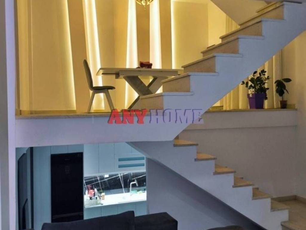Sindos: Special architectural design, luxurious maisonette 130 sq.m. Built with standard materials and minimal aesthetic decoration with a focus on the natural lighting of the spaces. It is spread over 6 mezzanines served by a staircase and an internal elevator. It includes 3 comfortable bedrooms, 1 kitchen, living room and dining room, storage room and 2 bathrooms. It is fully furnished and equipped with electrical appliances. Built in 1990 and completely renovated in 2024. Outside parking space. No monthly utilities. Within a shared plot in the center of Sindos