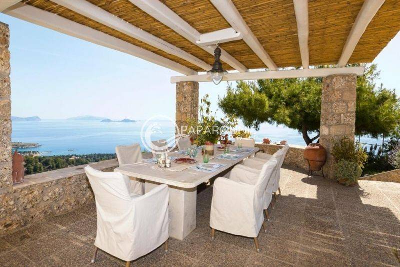 Built in a quiet location on the top of a hill, the villa offers breathtaking views of the Saronic Gulf, Spetsopoula, and beyond. It consists of two independent apartments: