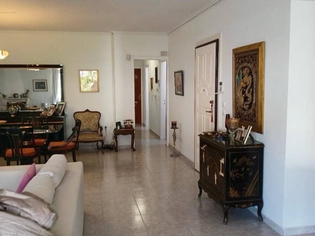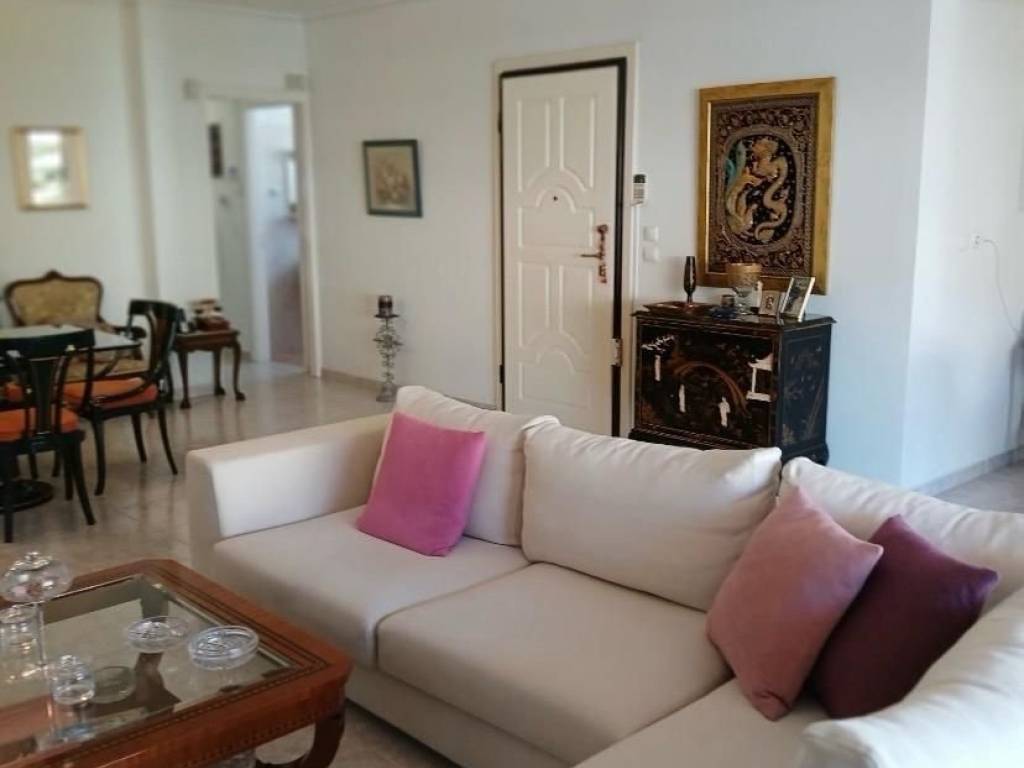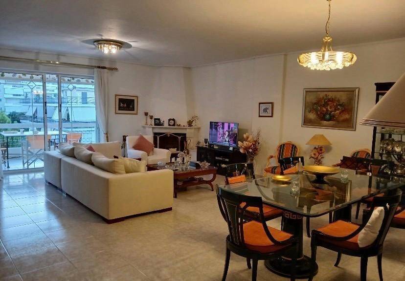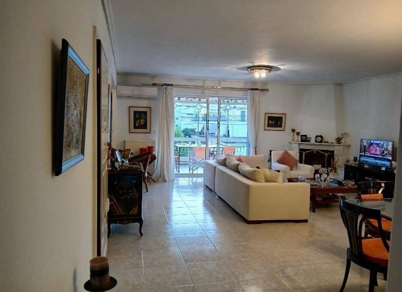 A wonderful 130 sq.m. floor apartment on the 3rd floor is available for sale in Ano Glyfada. Built in 1998, it is located in a quiet residential area with detached houses and apartment buildings of distinctive architecture, and has the following features: It is within close distance from the Glyfada Shopping Center and has easy access to the local market. The property has an excellent layout that makes it particularly functional and comfortable. The living room, dining area, and kitchen form an open-plan space with a fireplace. The wide veranda offers a beautiful view of Mount Hymettus. It is in excellent condition and requires no renovation. The three bedrooms at the back overlook the garden and the sea. The apartment is equipped with an alarm system, as is the building in the common areas. It features: air conditioning, solar water heater, autonomous oil heating, security door, aluminum frames with double glazing, tile and wood floor, fireplace, verandas, awnings, 1 bathroom, 1 WC, eastern orientation, 1 parking space in the pilotis, 1 storage room in the basement, has been recently painted, and is of Energy Class D. The selling price is €570,000. Korres real estate, contact person, Mrs Antigoni Korre, tel. 6984199999
