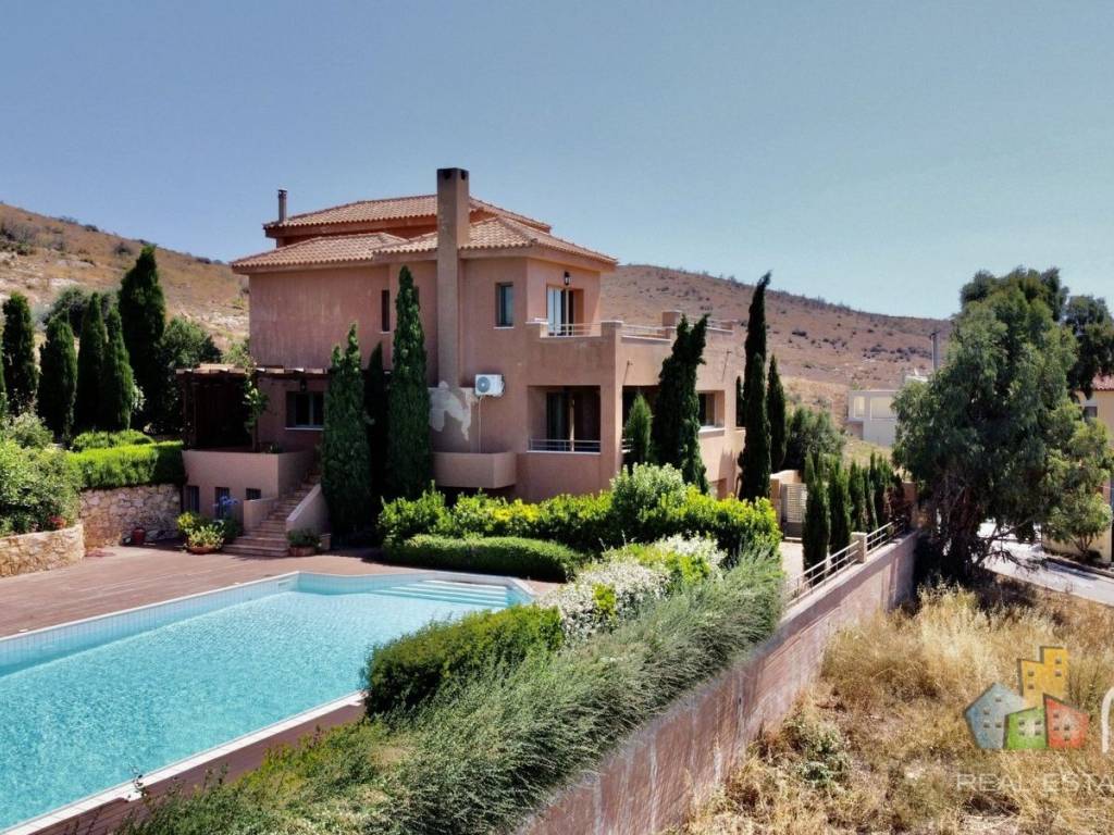 This 410-sqm country-style house, built on a hill in 2005 on a 1,333-sqm plot, offers absolute privacy and panoramic views to the sea. It will be available from May 2026. The exterior features large terraces, a heated swimming pool with wooden deck and a landscaped garden planted with lavender and shrubs. The house is developed on four half levels, all served by an elevator, combining comfort and functionality. In the semi-basement, which has direct access to the garden, there is a playroom, a bedroom, a bathroom, a kitchenette, a hammam, a storage room and a garage with two parking spaces. The raised ground floor includes a reception area with a living room and a marble fireplace, a fitted kitchen and an additional space that can be used as an office or sitting room. From this level, there is access to three covered terraces with beautiful views. A few steps higher, on the first floor, there is a WC, a bedroom, a bathroom, a laundry room and a storage room. The second floor hosts a spacious master bedroom with private bathroom and comfortable wardrobes, as well as a small area ideal for an office or sitting room. On the top floor, there is another master bedroom with its own bathroom. The residence is located close to international schools. Pendeli with shops and services is just 2 km away; while in Pallini, (6 km) there are metro and suburban. The airport is 20 minutes by car. Mobilia Real Estate, Contact Phone:+30 2107563200, email: info@mobilia.gr, website: www.mobilia.gr