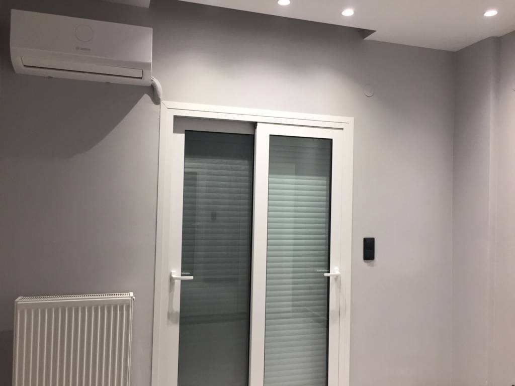 Completely and luxuriously renovated 1st floor apartment in a quiet area in the center next to Agiou Dimitriou. New plumbing and electrical installation and switching material. Renovated bathroom with mezzanine storage space, shower , modern style and sanitary ware. New full kitchen with new oven and hob preinstallation for dishwasher and laundry machine. New aluminum with electric shutters. Decorative false ceilings with spotlights. New security door and interior doors. New floors with new modern large-sized tiles. Large wardrobe with mirror in the bedroom. Inverter Klima The living-dining room area is divided and one area can be used as a second bedroom.
