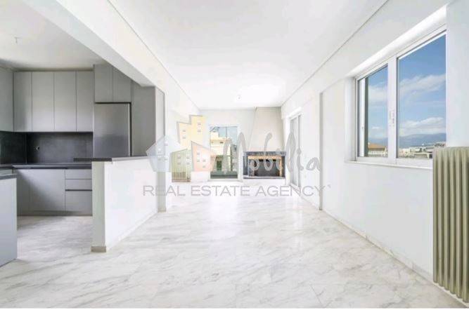 Beautiful, renovated 89-m² apartment located on the fourth and top floor of a building built in 1995, in the charming Marmariotissa Church neighborhood of Kato Chalandri. This quiet and bright apartment is surrounded by large terraced balconies that offer beautiful views as far as Psichiko. It comes with a double parking space under the building's stilts and a 10-m² cellar in the basement. It comprises an entrance hall, a living room with a fireplace, two bedrooms with built-in wardrobes, and a bathroom with a window, bathtub, and new washing machine. The modern, semi-open kitchen is fully equipped with brand new appliances. White marble floors are featured throughout. The renovation includes the kitchen, bathroom, and double-glazing, new panel radiators, a security door, a 200-liter solar water heater, and a security door. Located close to shops, public schools, supermarket, bus, as well as Kifissias Avenue, it is an 8-minute walk from the lively center of Chalandri and close to international schools. The nearest metro station is 1.6 km away. . Mobilia Real Estate, contact phone: 2107563200, 2107563202, email: info@mobilia.gr, website: https://www.mobilia.gr