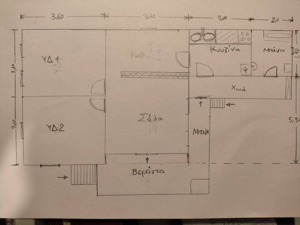 Elevated detached house on a corner plot with south-east orientation. It is bright, free from all sides and has an unlimited view with a garden, storage room and fencing. It consists of a hallway, kitchen, living room with dining room, two bedrooms and a bathroom. It has individual heating with radiators and hot water with an oil burner. Windows, screens and new wooden floors, frames and shutters.Tiles in the hallway and in the kitchen. It has A/C and solar water heater, electric cooker, refrigerator and washing machine. Extensively renovated in 2018: masonry, painting, ceilings, floors, balconies, perimeter concrete reinforcement, shutters, doors, plumbing and electrical fittings with a new electrical panel.