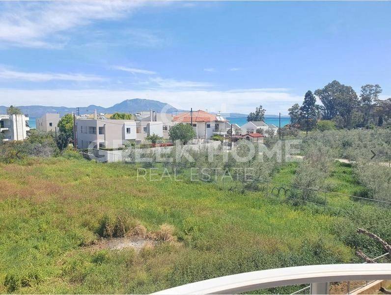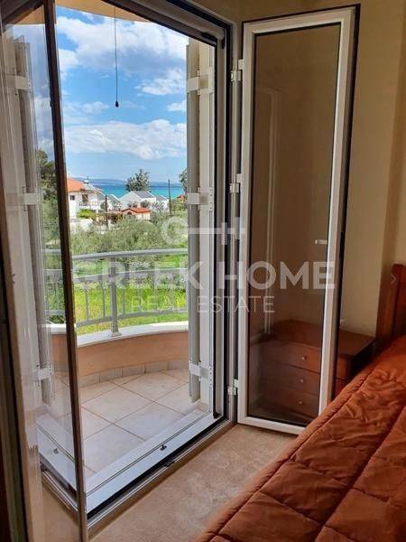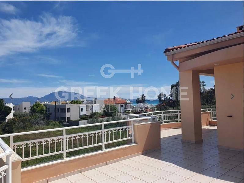 Velo, Nerantza - Detached House 216sqm plot 970sqm, unfurnished, bedrooms 4, levels 3, very good condition, year built 2007, energy class C, living room, hall, kitchen, 3 bathrooms, wc, heating type: autonomous (oil), parking, quiet, dual aspect apartment, luminous, sea view, frontage, storage space, solar heater, fireplace, balconies, large balconies, garden, built in appliances, aluminum frames, double glazed windows, door screen, marble & tile floors, without common charges, secure door, luxurious, internal staircase, barbeque, pets allowed, sea front, close to sea (up to 200m).