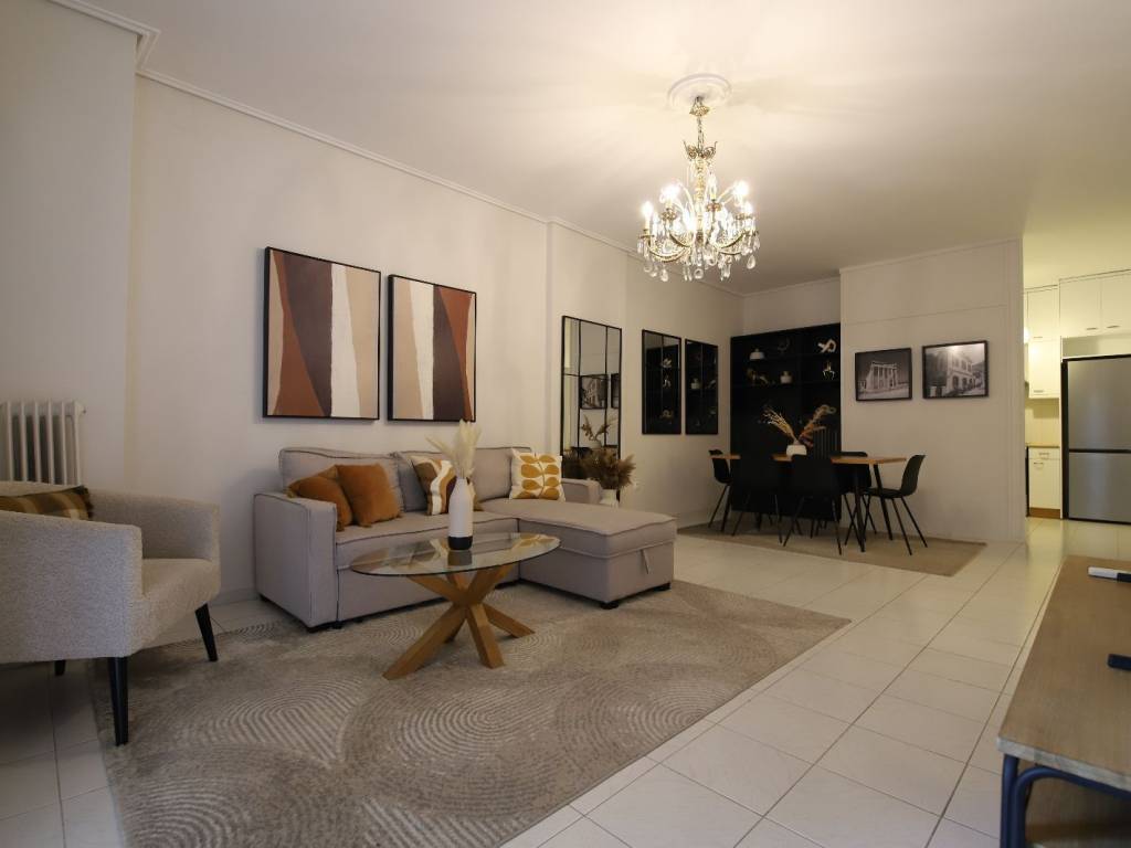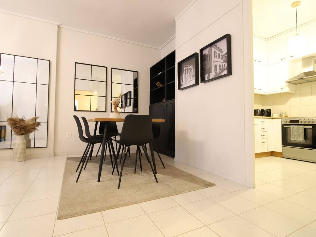 Furnished and fully equipped second floor apartment in Mets on Dikearchou Street. It has two bedrooms, one bathroom and one wc, independent kitchen, open plan dinning area - living room. Available with a flexible lease of 3-6-12 months.