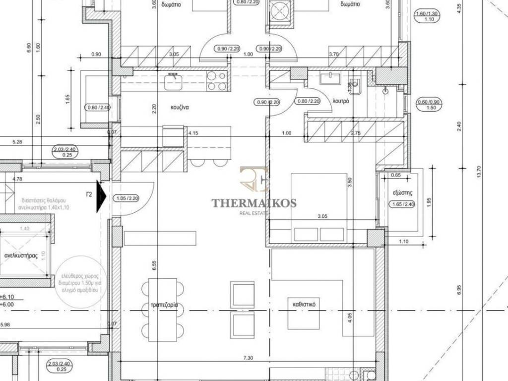 Πωλείται νεόδμητο, διαμέρισμα, 140τ.μ.(Γ2), στην περιοχή "Πυλαία - Επέκταση". Πρόκειται για ένα πολυτελές, γωνιακό και φωτεινό ακίνητο. Βρίσκεται στον 3ο όροφο (με αποκλειστική χρήση δώματος) της οικοδομής και διαθέτει ασανσέρ. Αποτελεί μια αξιόλογη επιλογή για οικογένειες. Αυτή τη στιγμή βρίσκεται υπό κατασκευή. Αποτελείται από 3 υπνοδωμάτια με ντουλάπες, σαλοκουζίνα, 1 μπάνιο και 1 WC. Επιπλέον διαθέτει βεράντα, αποθήκη και θέση στάθμευσης. Στα εσωτερικά του στοιχεία αξίζει να σημειωθούν η θωρακισμένη πόρτα και η δομημένη καλωδίωση. Διαθέτει κουφώματα αλουμινίου με διπλά τζάμια. Τα δάπεδα είναι από ξύλο και πλακάκια. Διαθέτει αυτόνομη θέρμανση με αντλία θερμότητος. Επιπρόσθετα υπάρχει ενδοδαπέδια θέρμανση. Η ενεργειακή του κλάση είναι A+. Βρίσκεται κοντά σε αεροδρόμιο και σχολείο. Τιμή πώλησης: 450000€. Κωδικός ακινήτου: 10905 Για περισσότερα ακίνητα επισκεφθείτε την ιστοσελίδα μας http://www.thermaikosrealest.gr. Thermaikos Real Estate Κλεάνθους 39, Θεσσαλονίκη, Ελλάδα http://www.thermaikosrealest.gr info@thermaikosrealest.gr Τηλέφωνο: 2310900700 Κινητό: 6907218688 ΥΠΕΥΘΥΝΟΣ ΑΚΙΝΗΤΟΥ: ΠΑΠΑΔΟΠΟΥΛΟΣ ΛΑΖΑΡΟΣ Προσοχή! Για την υπόδειξη του ακινήτου είναι απαραίτητη η υπόδειξη της αστυνομικής ταυτότητας και του Α.Φ.Μ. σας σύμφωνα με τον Ν.4072/11-4-2012 ΦΕΚ 86 Α.