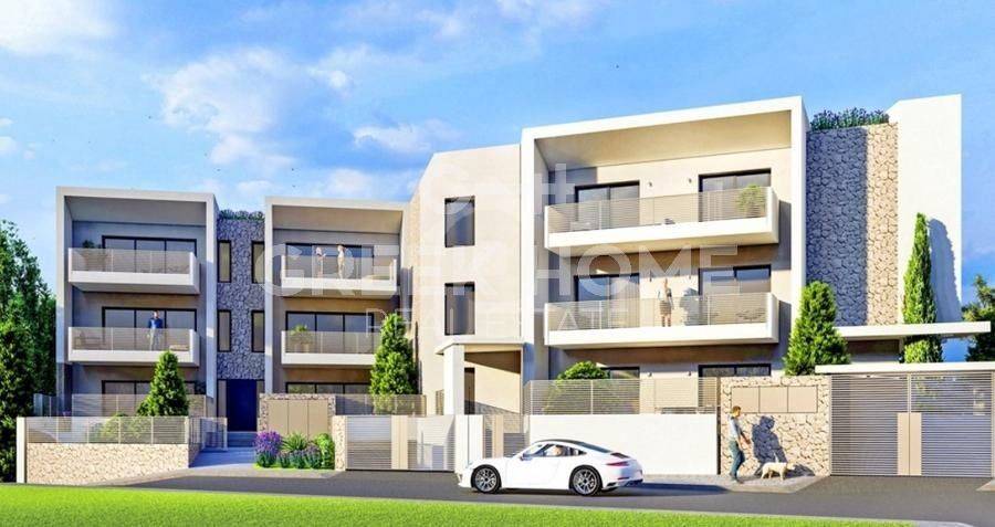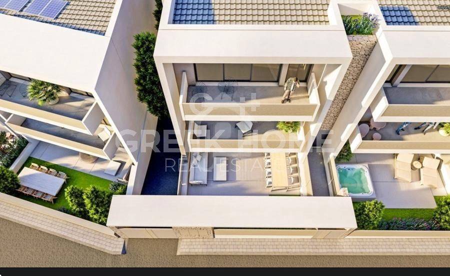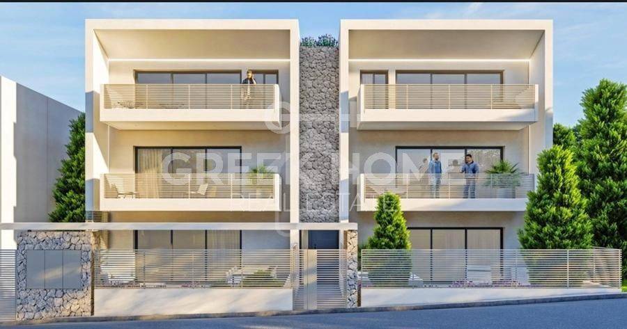 Pallini (Attica - Eastern Suburbs), Vakalopoulo - Tangent Maisonette 117sqm plot 410sqm, unfurnished, bedrooms 4, levels 2, 1st (75sqm, 2 bedrooms, living room, dinning room, kitchen, bathroom) - 2nd (42sqm, 2 bedrooms, bathroom), under construction, constructionstage frames, year built 2025, energy class A+, living room, kitchen, semi-outdoor space, 2 bathrooms, heating type: autonomous (fan coil), air condition, parking covered, quiet, dual aspect apartment, unobstructed view view, frontage, storage space, solar heater, external thermal insulation, balconies, elevator, double glazed windows, door screen, office, night electricity discount rate, secure door, alarm, luxurious, internal staircase, satellite, laundry room, pets allowed, close to school (up to 500m), close to bus stop (up to 500m).