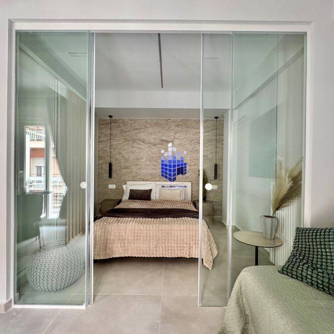A 43 sq.m. front studio apartment is available for sale in Martiou, in eastern Thessaloniki. It is a completely renovated second-floor studio apartment in a well-maintained building with an elevator. It consists of a spacious living room-kitchen, a bedroom, a bathroom, and a 5 sq. m. veranda. It has independent natural gas heating and air conditioning. It also has synthetic double-glazed windows, awnings, tiled floors, and a security door. This is a comfortable studio apartment with a modern aesthetic, which is available fully furnished and equipped with all the necessary electrical appliances. The property is located next to a commercial area, a stone's throw from the universities, the beach, and the center of Thessaloniki. It is very close to public transport and metro stops. It is an ideal choice for a high-yield investment, as well as for owner-occupancy. You can visit our website: http://www.bluestonerealty.gr to stay up to date with our new properties. *When viewing the property, you must present your ID and tax identification number in accordance with Law 4072/2012. *The exact location on the map does not correspond to the actual location of the property.