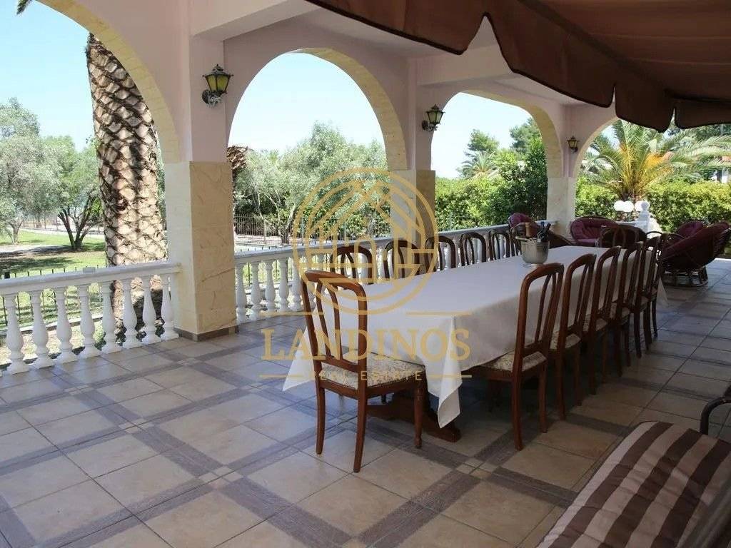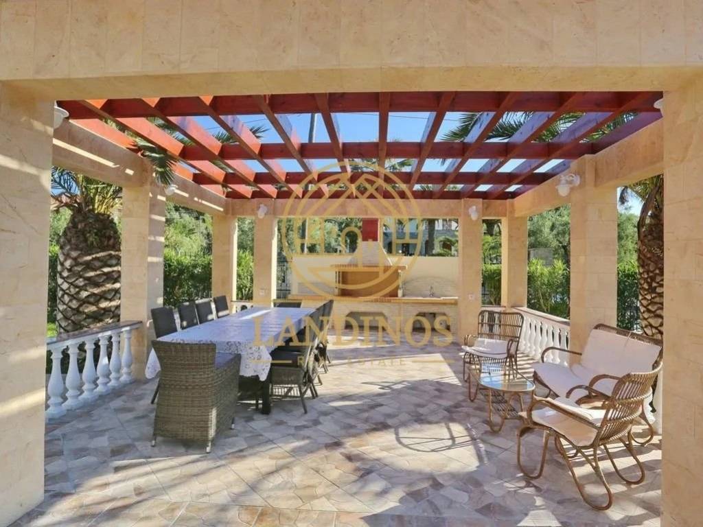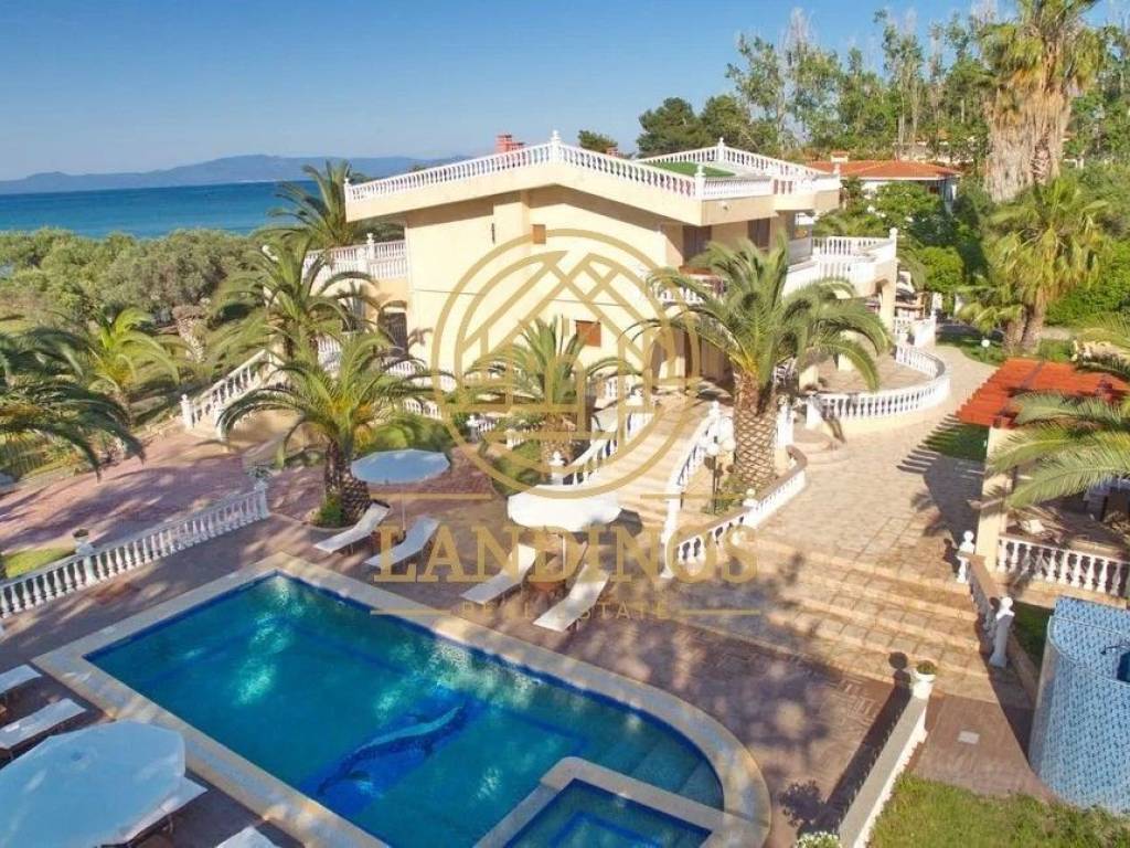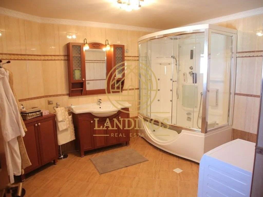 Luxurious villa for sale in Hanioti, Halkidiki, fully renovated in 2017. The residence extends over three levels with a total area of 350 m² within a privately owned plot of 2,100 m², offering impressive views of the sea and the Mount Athos Peninsula. Property Features 5 Bedrooms 2 Living Rooms 2 Fully Equipped Italian Kitchens 5 Bathrooms 8 WC 2 Jacuzzis 2 Fireplaces The interior and exterior decoration is made of luxurious materials such as marble, onyx and natural stones. The villa is available fully furnished, with new designer furniture and modern electrical equipment. Amenities & Equipment Alarm system with 8 cameras Oil heating system Air conditioning Armored doors Satellite TV Solar water heater Outdoor Area Large private pool Sun loungers & umbrellas 2 Outdoor showers 2 Fountains Kiosk with Barbeque Handicap ramp Pergolas & outdoor lighting Automatic watering Perimeter fencing Boiler room