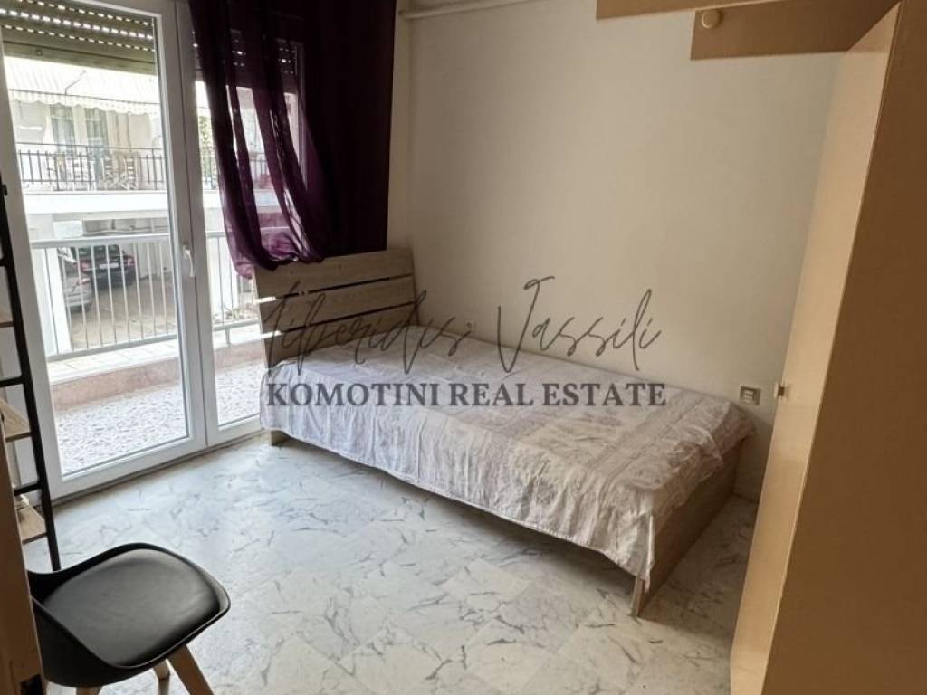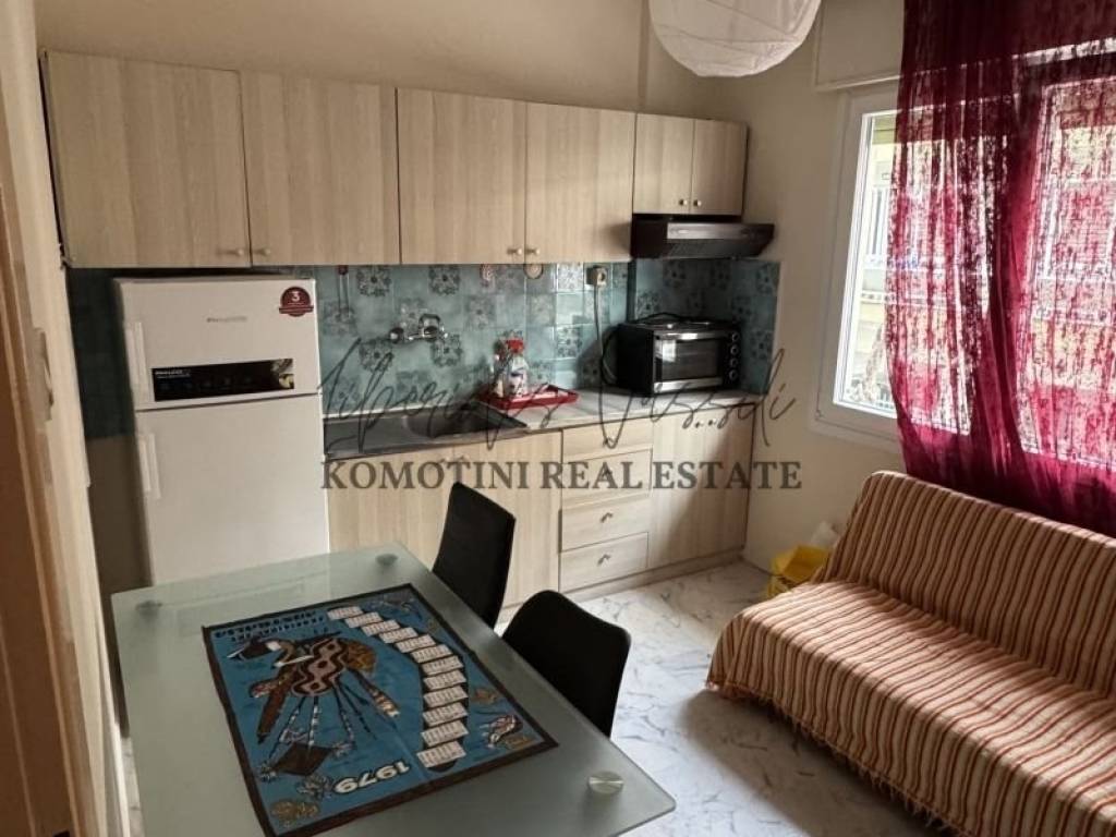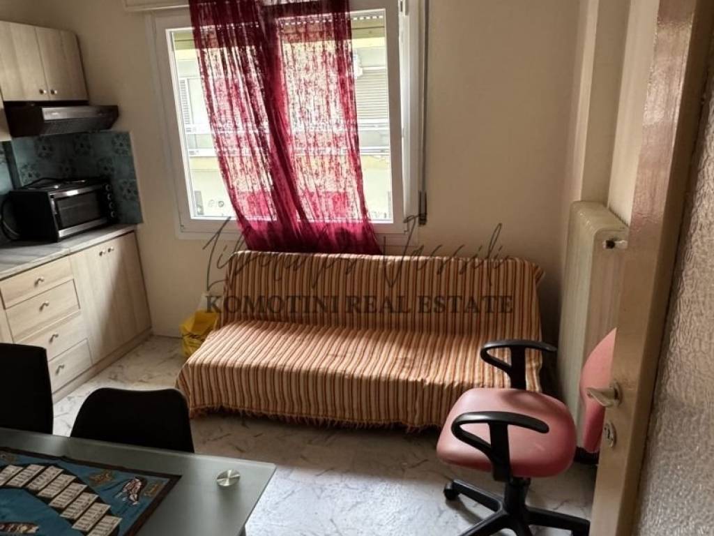 Property Code: 1-52 - Studio FOR RENT in Komotini Center for € 350 . This 35.00 sq. m. furnished Studio is on the 1 st floor and features 1 Bedroom, an open-plan kitchen/living room, bathroom and a WC. The property also boasts Heating system: Air conditioner, view of the Park, Window frames: Aluminium, Security door, elevator, A/C, electrical appliances, double-glazed windows. The building was constructed in 1985 and renovated in 2025 . Building Energy Rating: D