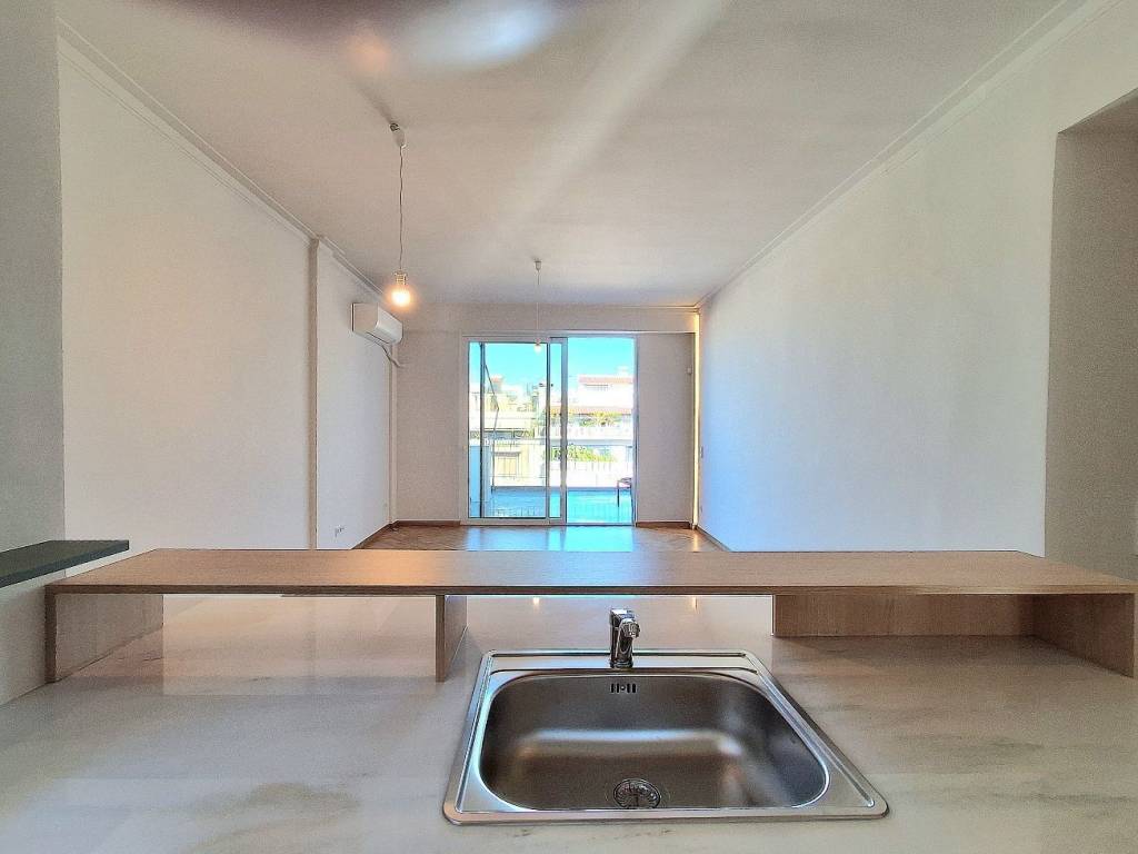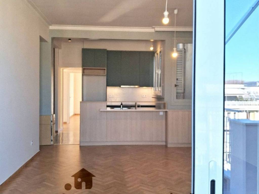 A luxury penthouse apartment of 93 sq.m., on the 5th floor of a well maintained building situated on the famous pedestrian street of Fokionos Negri. The apartment has just been thoroughly renovated, is bright and airy and includes a living area with a large terrace, an open-plan equipped kitchen, 2 bedrooms (one with an en-suite bathroom), an office space, 2 bathrooms, and a storage. It features beautiful oak floors, aluminum frames with double glazing, electric shutters and screens, external thermal insulation, heating and cooling with 3 inverter air conditioners, a solar water heater, and an alarm system.