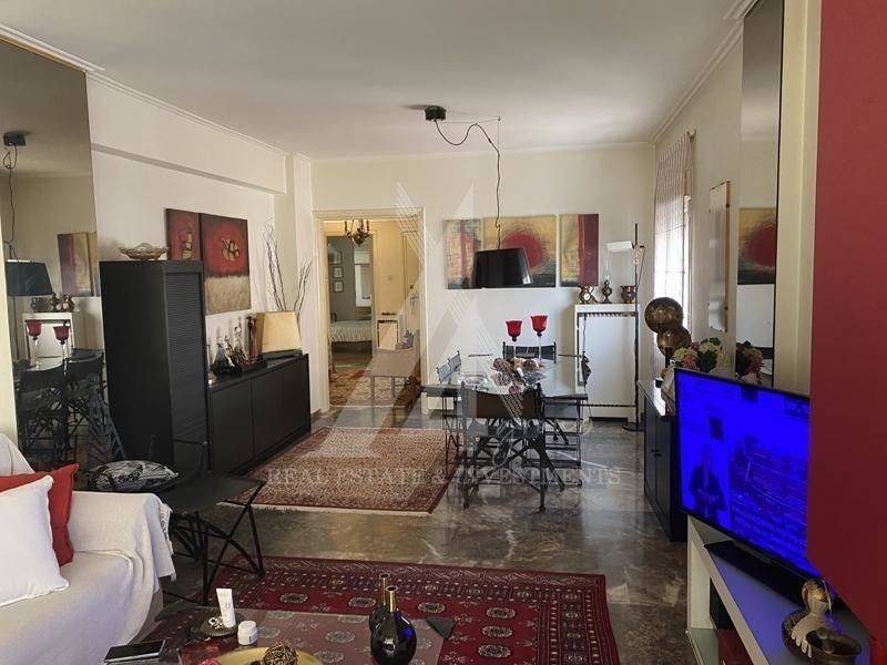 Paleo Faliro, Flisvos - Apartment 114sqm bedrooms 3, levels 1, 5th, excellent condition, year built 1976, energy class G, living room, kitchen, bathroom, wc, heating type: central (natural gas), air condition, quiet, luminous, frontage, solar heater, fireplace, balconies, tents, elevator, aluminum frames, double glazed windows, wood & marble floors, night electricity discount rate, secure door, residential zone, access from asphalt, close to school (up to 500m), close to tram station (up to 100m), close to market (up to 100m).