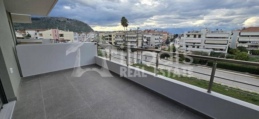 Nayplio - Apartment 55sqm bedroom, levels 1, 3rd, newly built, year built 2025, energy class A+, living room, hall, kitchen, bathroom, heating type: autonomous (heat pump), air condition, parking ground floor, quiet, dual aspect apartment, luminous, panoramic view, frontage, painted, electric roller shutters, solar heater, external thermal insulation, large balconies, elevator, built in appliances, thermal shut-off frames, double glazed windows, door screen, ceramic tiles floors, secure door, video doorbell, luxurious, ev charger, residential zone, south-western orientation, access from asphalt, close to hospital (up to 1000m), close to banks (up to 1000m), close to market (up to 200m), close to school (up to 500m), close to entertainment (up to 1500m), close to super market (up to 100m). In a central location of the city of Nafplio, an excellent, newly built uninhabited apartment, measuring 55 sq.m., is for rent. This is an apartment that includes a spacious living room combined with a functional kitchen, a bedroom and a bathroom with shower. It is bright and all rooms have direct access to spacious balconies, with a panoramic view of the castle of Palamidi and a southwest orientation. It is located on the 3rd floor of a modern apartment building with external thermal insulation, a heat pump that provides cooling and heating in each room, a solar water heater, energy-efficient aluminum frames with thermal break, electric shutters, double glazing and screens, an armored door, a built-in bedroom wardrobe, modern floor tiles, an independent washing machine location. It also provides a new built-in electric stove and hobs. A big advantage is that it is located in a safe and quiet neighborhood, next to a mini market and has easy access, even on foot, to many parts of the market, such as pharmacies, etc. It provides covered parking for a vehicle with the possibility of charging electricity. Pets are not allowed in the apartment.