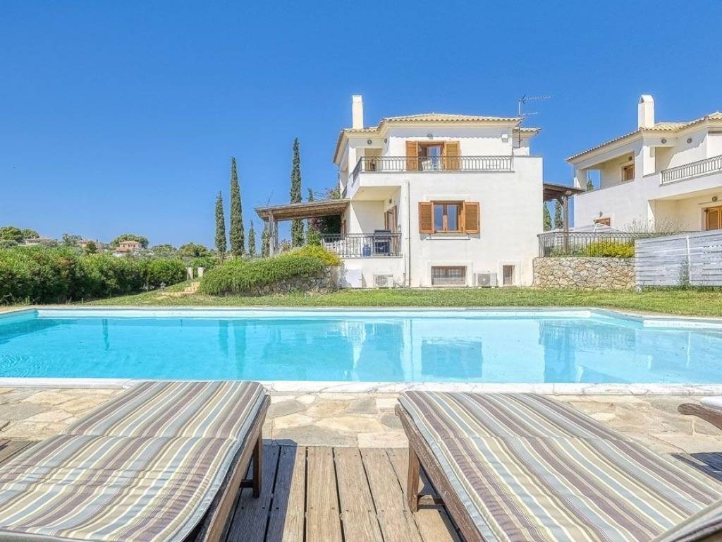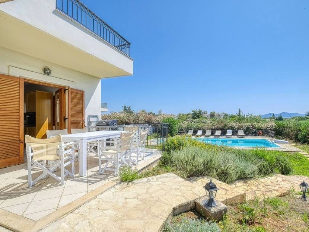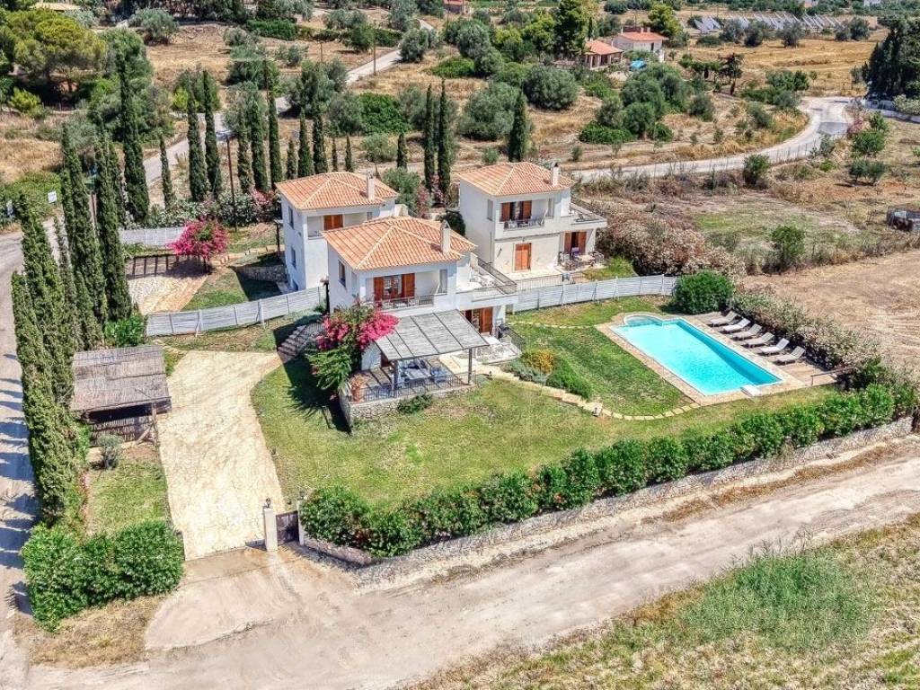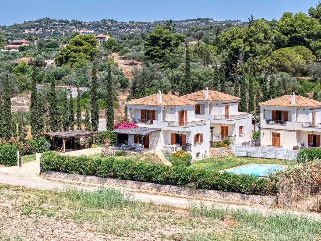 Set within a serene and private complex of just three homes, this beautifully designed 167 sq.m detached house offers the perfect blend of comfort, style, and tranquility. With four generously sized ensuite bedrooms and an additional guest WC, this property is ideal for families or those seeking a peaceful retreat with ample space. The ground floor features an inviting open-plan layout that seamlessly integrates the living, dining, and fully equipped kitchen areas—perfect for both entertaining and relaxed everyday living. Upstairs, you’ll find two bright ensuite bedrooms, each with its own private balcony offering open, unobstructed views. The lower ground floor offers two additional ensuite bedrooms, providing flexibility for guests or family members. Enjoy the use of a shared swimming pool, surrounded by nature and a quiet atmosphere that enhances the home's sense of calm. Whether as a permanent residence, holiday home, or investment property, this home is a rare opportunity to own a slice of tranquility with modern amenities. Location: Porto Heli is located on the east coast of the Peloponnese mainland, 6 km south of Kranidi and 40 km southeast of Nafplio. Unique Features: Porto Heli is a natural small port and along with Ermioni, which is nearby, is one of the most cosmopolitan destinations in Peloponnese. Porto Heli has largely developed its tourist infrastructure and is characterized by the abundance of luxury properties and high quality villas. In the marina of the area you can enjoy wonderful walks along the streets with shops, restaurants, hotels. The hotel facilities offer a plethora of activities from water sports, diving to hiking. Marinas for sailing, views of beautiful Spetses just a breath away, fresh fish and interesting nightlife. Accessibility: Porto Heli is just two hours drive from Athens and only 85 km from Nafplio. The area is connected by ferry to Spetses, Hydra, Poros, Ermioni and Piraeus. Investment Opportunity: Porto Heli, also known as the "Greek Riviera", has managed to establish itself as the number one holiday home destination for wealthy Greeks and foreigners, offering huge opportunities for investors.
