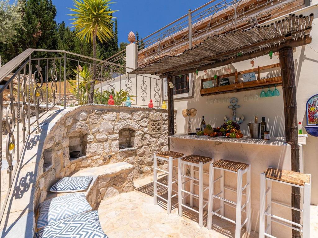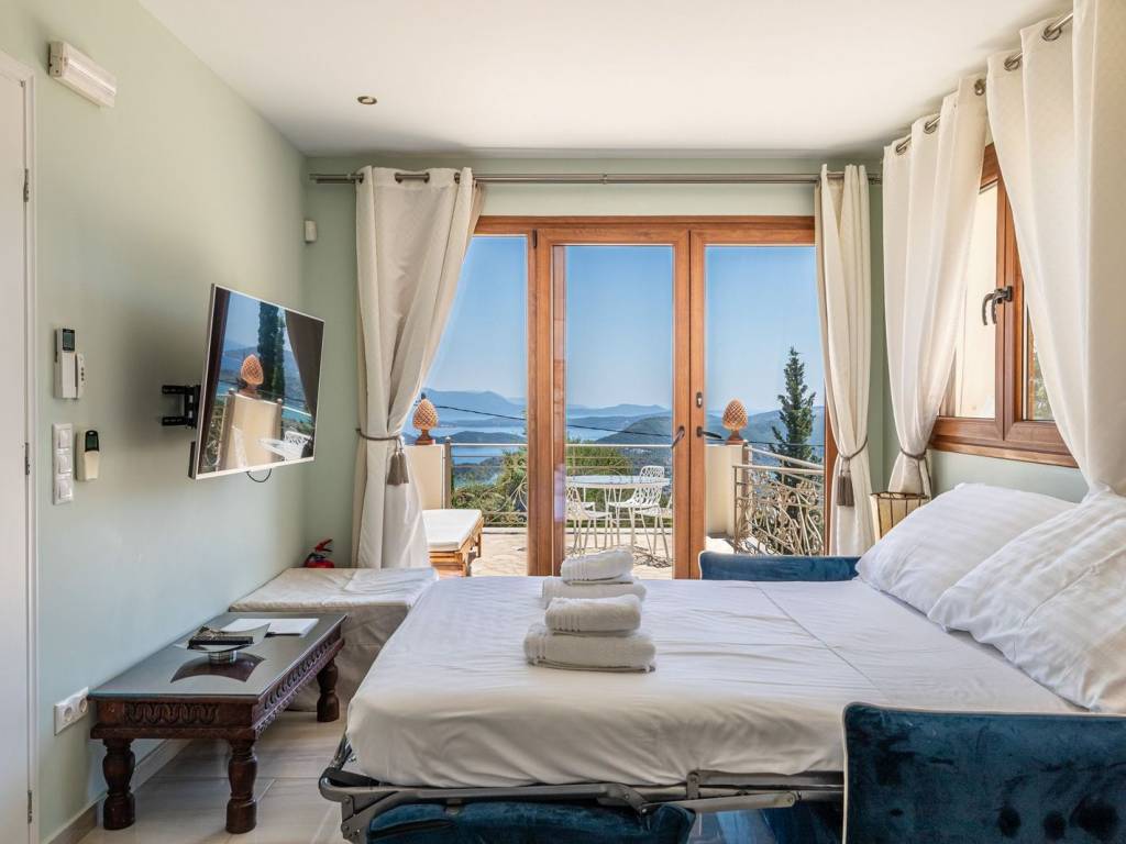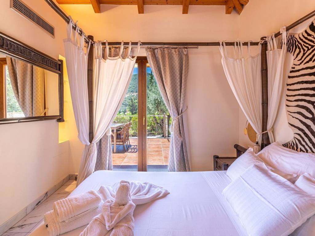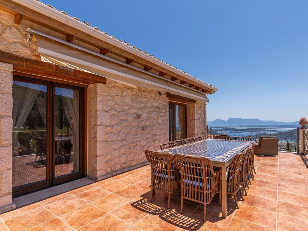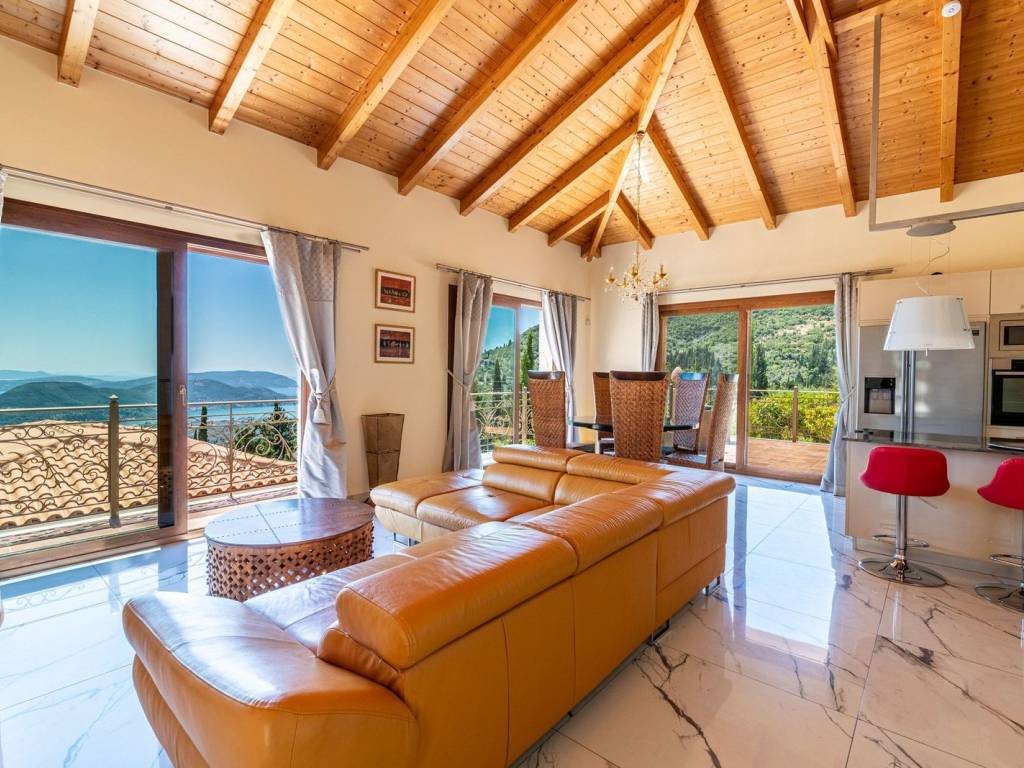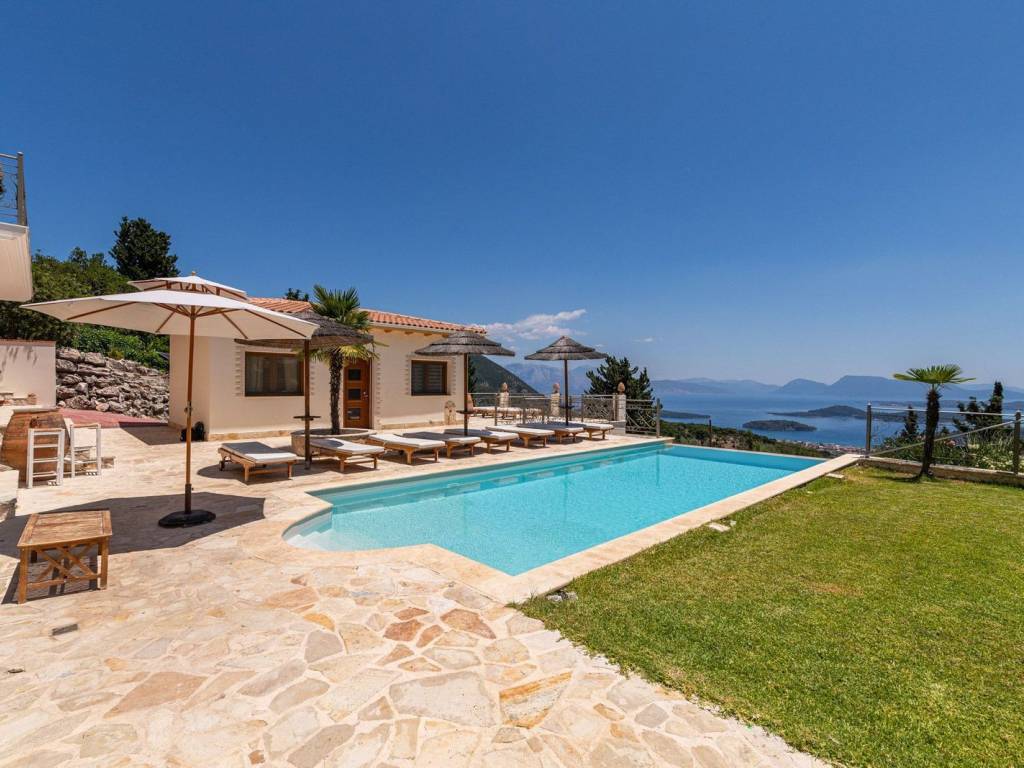 Discover an extraordinary opportunity to own a private hillside estate with commanding views over the sparkling Ionian Sea and the storied islands of Scorpios and Meganisi. Nestled between the charming village of Vafkeri and the lively coastal town of Nidri, this serene retreat is set on 4,000 square meters of beautifully landscaped land, offering unmatched tranquility, privacy, and elegance—just six minutes from the sea. The estate comprises three distinct villas, each thoughtfully designed to blend harmoniously with the natural surroundings while offering maximum comfort, privacy, and breathtaking views. The crown jewel, is a spacious 160 sqm residence with three beautifully appointed bedrooms, three modern bathrooms, and a generous open-plan living area with a fully equipped kitchen. Expansive glass doors lead to a stunning 47 sqm sea-view terrace—ideal for alfresco dining or sunset lounging. The villa features modern amenities such as floor heating, air conditioning, and a central heat pump system for year-round comfort. Adjacent to the main villa, two guest residences offer further accommodation with charm and functionality. 37 sqm 47 sqm, each feature an open-plan living space with kitchen, a tranquil bedroom, private bathroom, and their own 47 sqm terraces. Both are perfect for hosting guests, extended family, or generating premium rental income. At the heart of the estate lies a spectacular infinity pool (10 x 4.2 m) that appears to spill into the Ionian Sea, flanked by sun-kissed terraces that can accommodate up to 14 loungers. The outdoor experience is elevated with a dedicated pool bar and barbecue area, inviting leisurely afternoons and candlelit evenings under the stars. Surrounded by vibrant Mediterranean and exotic plantings, the grounds offer the perfect backdrop for relaxation or entertaining. Additional amenities include a large storage room (47 sqm), a smaller utility space (6 sqm), a solar hot water system, and ample private parking. Whether you're seeking a luxurious private residence, a boutique rental venture, or a unique investment in one of Greece’s most sought-after locations, this exceptional Lefkada estate delivers unparalleled lifestyle and income potential. It is more than a home—it is a place where unforgettable memories are made. Lefkada is one of the few Greek islands accessible by car, enhancing both accessibility and demand. Known for its stunning beaches and growing tourism sector, it attracts buyers seeking holiday homes, boutique hotels, and premium land plots. The real estate market offers a range of opportunities, from renovating traditional houses to developing luxury villas with high rental yields. Its strategic location places it near Preveza, Paxos, and Kefalonia, making it a valuable hub in the Ionian region.