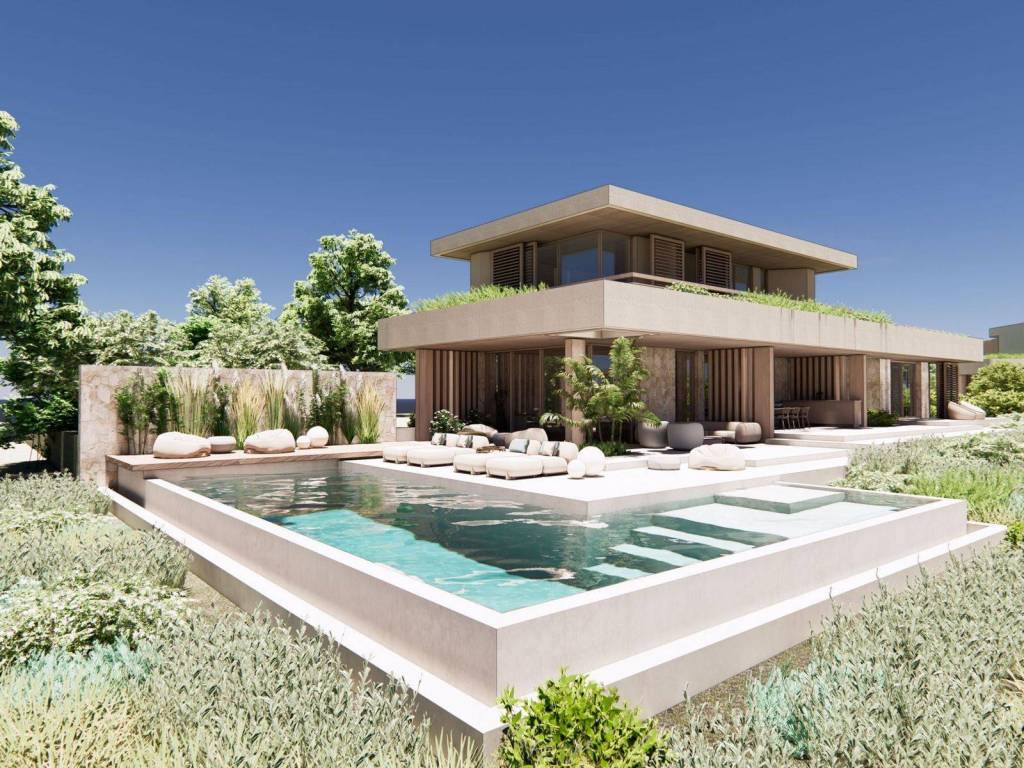Unfolding with the quiet grandeur of a finely crafted architectural composition, this off-plan beachfront villa reveals its spaces across three harmoniously arranged levels, each designed to capture the shifting light of the Ionian Sea and the serene rhythm of the surrounding landscape. Positioned directly on the water’s edge within an expansive 4,600 sqm plot, the residence enjoys the rare privilege of immediate private access to the beach through elegant stone steps, allowing the sound of the waves and the colors of the horizon to define daily life. Its west-facing orientation frames some of the most breathtaking sunsets in the Mediterranean, while its location—just one kilometer from the charming seaside town of Palairos—offers effortless walking and cycling access to the marina, the promenade, and the waterfront restaurants that give the village its unmistakable coastal charm. Designed to embody contemporary Mediterranean refinement and timeless elegance, the property offers a total of 340 sqm of living space, comprising the 295 sqm main villa and an independent 45 sqm guest pavilion. The architectural vision focuses on sophisticated minimalism, clean linear geometry, and a seamless dialogue between indoor and outdoor living. Generous floor-to-ceiling openings, panoramic glass surfaces, and expansive terraces dissolve the thresholds between interior spaces and the sea, creating flowing transitions and uninterrupted vistas. The architectural layout is distributed across three distinct levels, each defined by clarity, proportion, and purpose. The 110 sqm lower level serves as a discreet yet essential service and leisure zone, featuring a dedicated laundry area, a spacious playroom, generous storage, a mechanical room hosting all primary installations, and a complete bedroom suite ideal for staff or private guests. An internal staircase connects this level seamlessly to the main living spaces above. The 118 sqm ground floor forms the heart of the residence. The main entrance opens into an expansive open-plan living and dining area, where panoramic glazing draws the eye directly to the terraces, pool, and shimmering sea. The luxury kitchen, meticulously positioned for both functionality and views, allows effortless transitions between indoor and outdoor dining. The primary bedroom suite on this level offers direct access to outdoor lounging areas and uninterrupted west-facing vistas, creating an atmosphere of serenity and retreat. The 67 sqm first floor hosts two elevated master suites, each enjoying sweeping panoramic views of the Ionian Sea and the dramatic sunsets unique to this coastline. Generous openings and glass balustrades amplify the sense of light and space, while elegant detailing and refined materials define the interiors. The outdoor environment has been crafted as a natural extension of the interior. Multiple lounges, dining terraces, and relaxation zones embrace the coastline, while a spectacular heated infinity pool of approximately 60 sqm appears to merge seamlessly with the horizon. The vast outdoor areas, balconies, and terraces have been designed to accommodate numerous sitting and entertainment spaces, reinforcing the villa’s identity as a place of leisure, serenity, and refined seafront living. Landscaping will be supported by a full irrigation system and subtle, low-maintenance gardening that respects and enhances the natural contours of the plot. The interior specifications meet the highest standards of luxury. The villa will be delivered with a fully equipped premium kitchen and an outdoor kitchen ideal for al fresco gatherings. Complete bathroom installations and full showers are included throughout, while a comprehensive air-conditioning system serves all bedrooms and public areas. High-quality glass railings on the first floor guarantee unobstructed sea views, and an external automated entrance gate ensures privacy and security. The mechanical infrastructure includes boilers and solar panels for hot water, a heating pump for the pool, and a fully engineered technical room housing all essential systems. An advanced alarm system further enhances security across the property. Just moments away, the coastal town of Palairos welcomes residents with its vibrant marina, crystal-clear turquoise waters, scenic promenade, boutique restaurants, and laid-back Mediterranean atmosphere. Its proximity to Lefkada and other Ionian jewels further enhances its appeal, making it one of Greece’s most promising upscale destinations for discerning international buyers. This outstanding off-plan seafront villa in Palairos represents an exceptional opportunity to secure a bespoke luxury residence that unites architectural excellence, superior construction standards, and the rare privilege of private beachfront living—while remaining within effortless reach of the elegant marina life, restaurants, and coastal amenities of one of western Greece’s most captivating locations. Construction is scheduled to commence in spring 2026. Lefkada is one of the few Greek islands accessible by car, enhancing both accessibility and demand. Known for its stunning beaches and growing tourism sector, it attracts buyers seeking holiday homes, boutique hotels, and premium land plots. The real estate market offers a range of opportunities, from renovating traditional houses to developing luxury villas with high rental yields. Its strategic location places it near Preveza, Paxos, and Kefalonia, making it a valuable hub in the Ionian region.