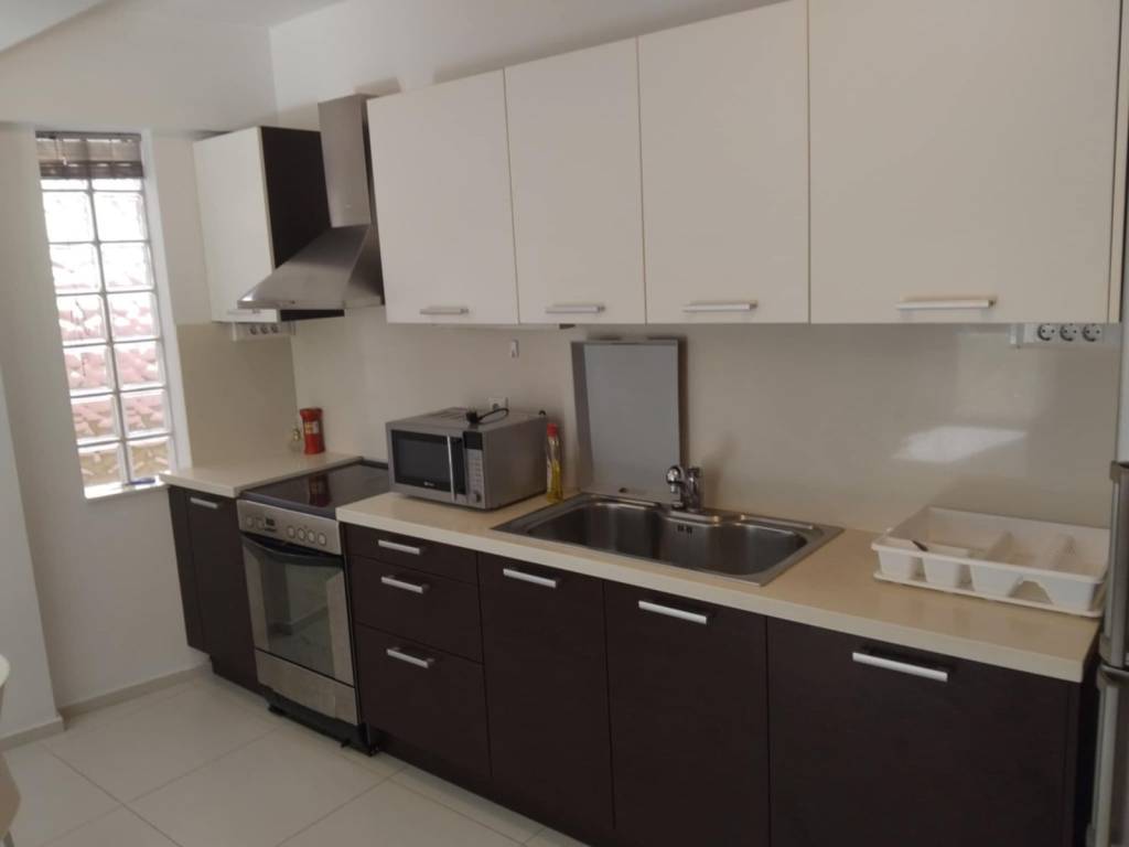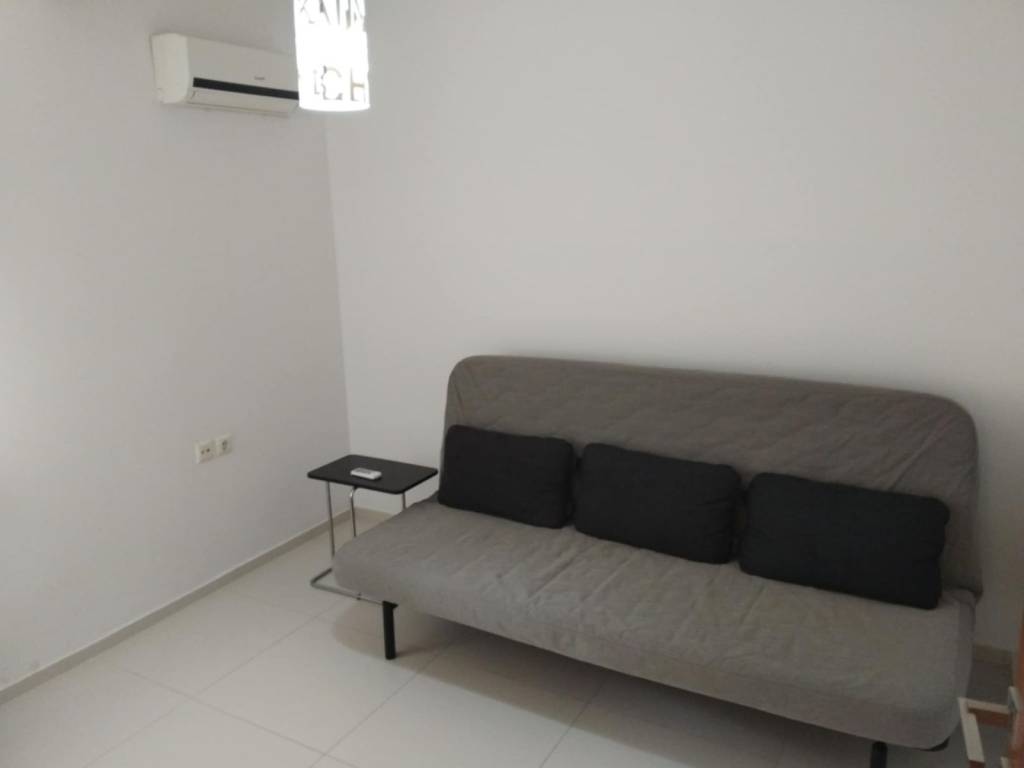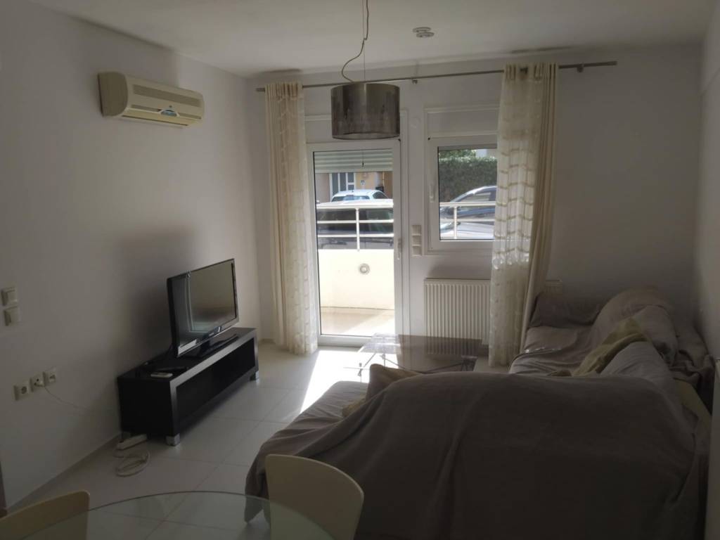 For rent newly built three-room ground floor apartment of 85 sq.m. in the Agia Aikaterini area. The apartment is bright, in excellent condition and is available furnished and electrically equipped. It has two comfortable bedrooms with fitted wardrobes, an open-plan living room-kitchen, bathroom, terrace-garden. Additional features include autonomous oil heating, air conditioning, electricity autonomy, electric aluminum frames, double glazing-screens, solar-electric water heater, armored smart Lock security door, alarm system, security cameras, Hof kitchen (refrigerator, washing machine & dishwasher, two TVs, coffee maker, microwave oven, etc.), open parking space. It is located in a quiet neighborhood, on a side street of a main road, close to public transport stops, schools, s/m, VOAK junction and 15' from the central market and Heraklion airport.