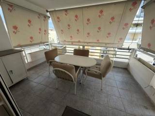 Paleo Faliro, Rema Pikrodafnis - Apartment 80sqm fully furnished, bedrooms 3, levels 1, 5th, renovated, year built 1996, renovation year 2021, energy class C, living room, kitchen, bathroom, heating type: autonomous (natural gas), air condition, parking covered, quiet, luminous, unobstructed view view, frontage, painted, storage space, solar heater, fireplace, tents, elevator, loft storage, aluminum frames, double glazed windows, door screen, wood & tile floors, secure door, residential zone, north-eastern orientation.