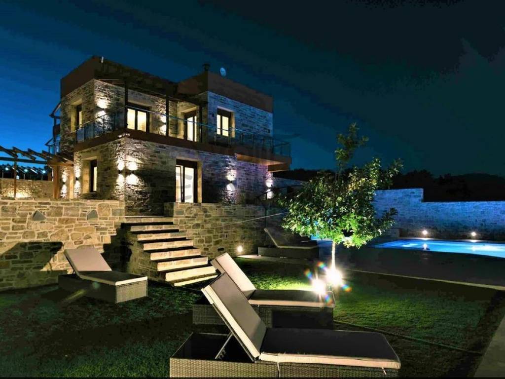 Ηράκλειο, Καμηλάρι. Πωλείται πολυτελές συγκρότημα δύο βιλών συνολικής επιφάνειας 323,36 τμ με ιδιωτικές πισίνες. Συγκεκριμένα, οι κατοικίες εκτείνονται σε δύο επίπεδα και προσφέρουν πανοραμική θέα. Η πρώτη βίλα, επιφάνειας 167,28 τμ, περιλαμβάνει ισόγειο 95,89 τμ με ενιαία διαρρύθμιση σαλονιού και κουζίνας, ένα υπνοδωμάτιο και ένα μπάνιο. Στον επάνω όροφο, εμβαδού 71,39 τμ, βρίσκονται δύο υπνοδωμάτια, δύο μπάνια και μεγάλες βεράντες με μοναδική θέα. Η δεύτερη βίλα, 156,08 τμ, αποτελείται από ισόγειο 78,04 τμ με σαλόνι και κουζίνα σε ανοιχτή διάταξη και ένα μπάνιο, ενώ ο πρώτος όροφος, ίσης επιφάνειας, περιλαμβάνει δύο υπνοδωμάτια, ένα μπάνιο και βεράντες. Γενικά και οι δύο κατοικίες παραδίδονται πλήρως επιπλωμένες και εξοπλισμένες με όλες τις ηλεκτρικές συσκευές, ενώ διαθέτουν εγκατεστημένα κλιματιστικά. Ο εξωτερικός περιβάλλων χώρος κάθε βίλας, ο οποίος είναι εξαιρετικά διαμορφωμένος με γκαζόν και ποικίλλα δέντρα, διαθέτει εξωτερική κουζίνα με παραδοσιακό ξυλόφουρνο και ψησταριά, καθώς και πλακόστρωτες αυλές. Πρόκειται για μία εξαιρετική επενδυτική ευκαιρία είτε για ιδιοκατοίκηση, είτε για τουριστική εκμετάλλευση.