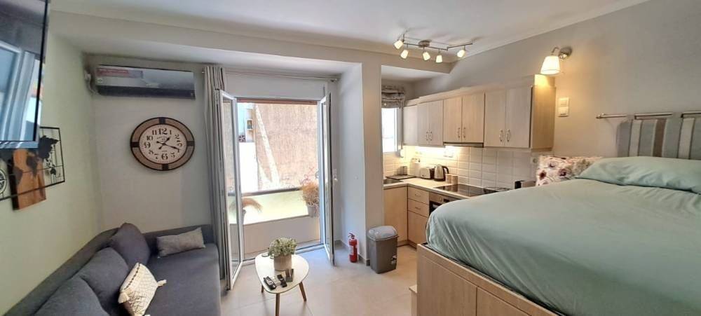 Polygon: Luxuriously renovated Studio 30 sq.m. for rent. It is front-facing on an elevated ground floor, with individual electric heating. It consists of 1 open-plan living room-kitchen-bedroom and 1 bathroom. It is fully furnished, equipped with all the necessary electrical appliances, built in 1980, painted and has energy-efficient aluminum frames with double glazing and screens, security door, air conditioning, tiled floors, electric water heater. In 2021 it was completely renovated, including the plumbing and electrical. Also, all the household appliances were purchased in 2021 with everything that is seen in the photos and a multitude of others, due to which absolutely NOTHING is required from a tenant. Located on OICHALIAS Street, in a quiet and functional neighborhood within walking distance of EVELPIDON, a public transport stop and 250m from a future METRO station. AVAILABLE FROM 1/1/2026. EXCLUSIVELY FROM LIVE HOME REAL ESTATE REAL ESTATE AGENCY. Price 450€ | Property Code: #GPA 21167
