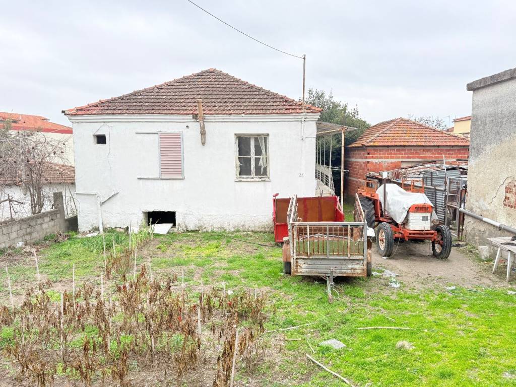 For sale 78 sq m. Detached house, 1 floor and 78 sq m. Warehouse on the ground floor, on a 400 sq m. Plot. Year of construction 1960. Consisting of the following rooms: Living room - Kitchen - 2 Bedrooms - Bathroom. Heating - Stove. Area - Aeginio Pierias.