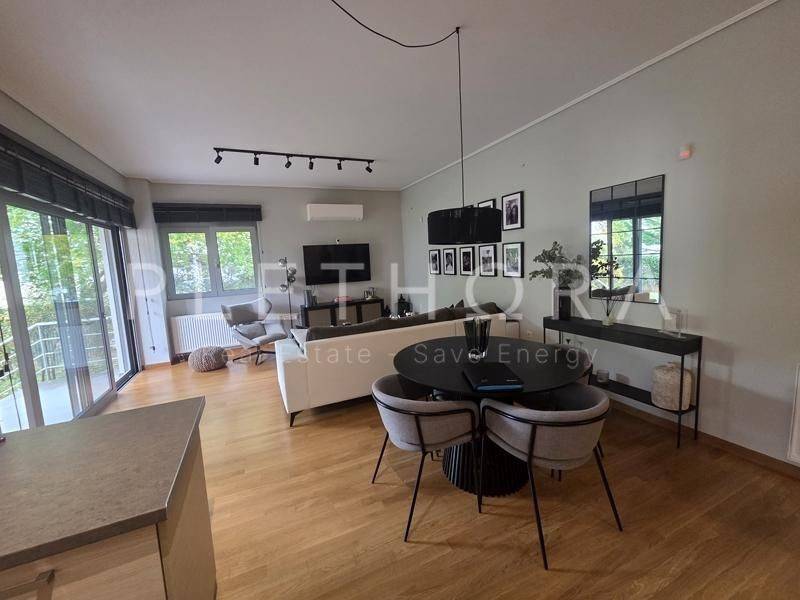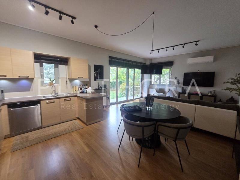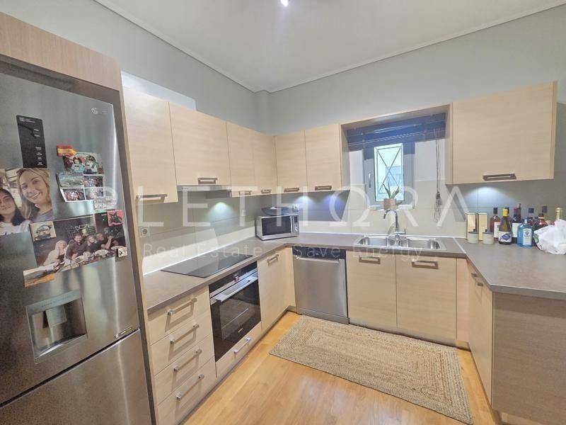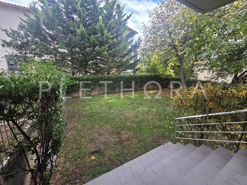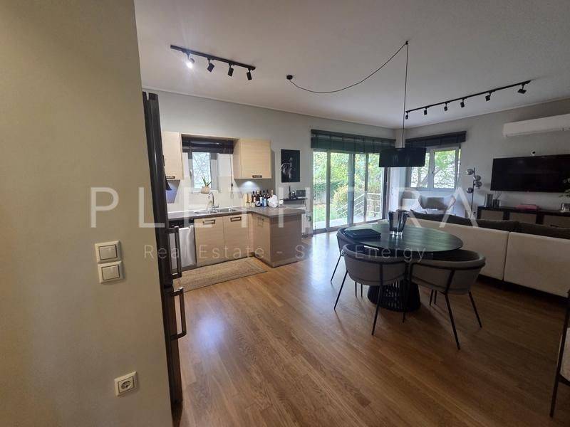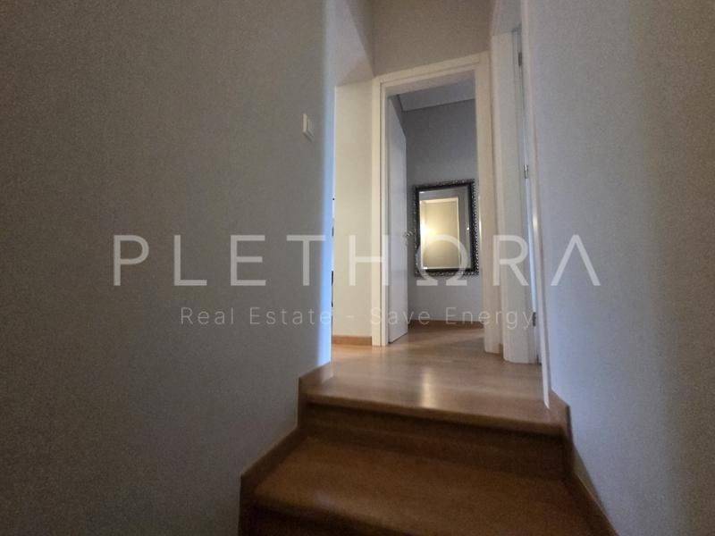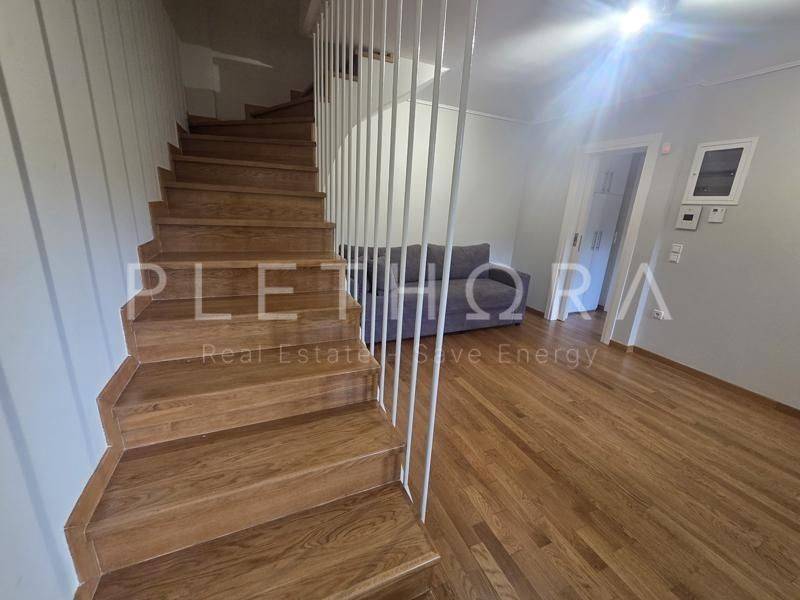 Kifissia, Centre - Tangent Maisonette 122sqm plot 230sqm, fully furnished, bedrooms 3, master bedroom, levels 2, semi-basement - ground floor, excellent condition, year built 2014, energy class B, 2 living rooms, kitchen, 2 bathrooms, heating type: autonomous (natural gas), air condition, parking covered, quiet, dual aspect apartment, luminous, unobstructed view view, painted, drop ceiling, electric roller shutters, storage space, solar heater, external thermal insulation, fireplace, balconies, garden, aluminum frames, double glazed windows, door screen, wood floors, night electricity discount rate, secure door, alarm, surveillance cameras, video doorbell, luxurious, internal staircase, smart home, playroom, cloakroom, guest house, laundry room, pets allowed, within city plan, residential zone, south-eastern orientation, access from asphalt, close to square (up to 500m), close to market (up to 200m), close to metro/train (up to 100m).