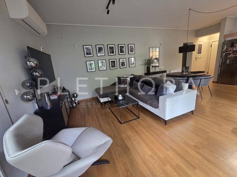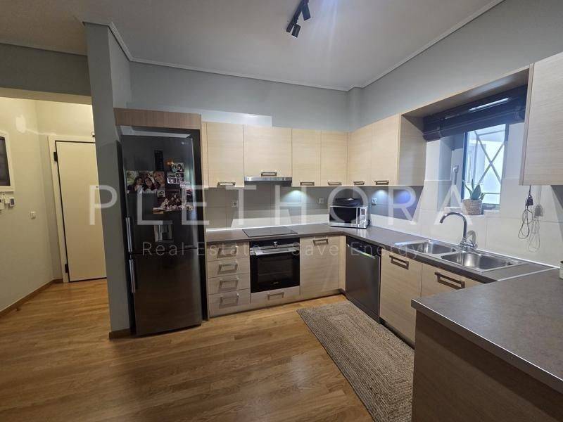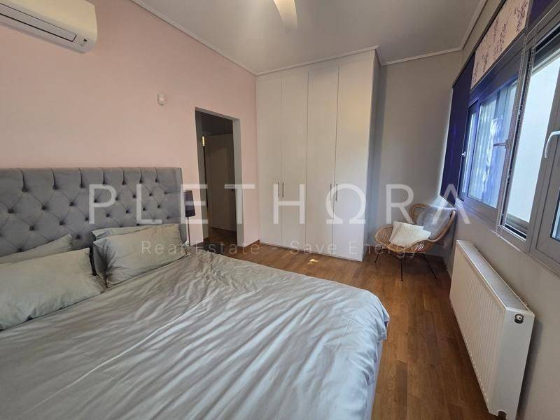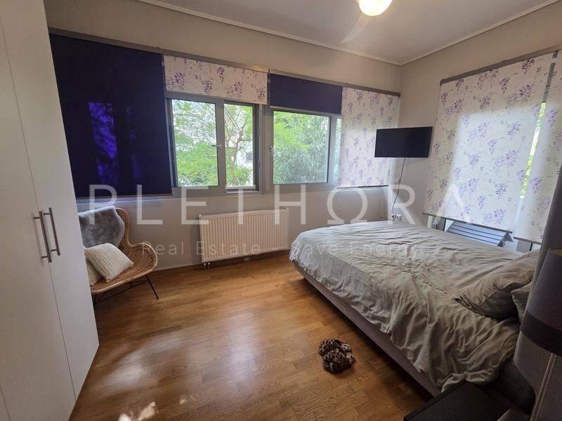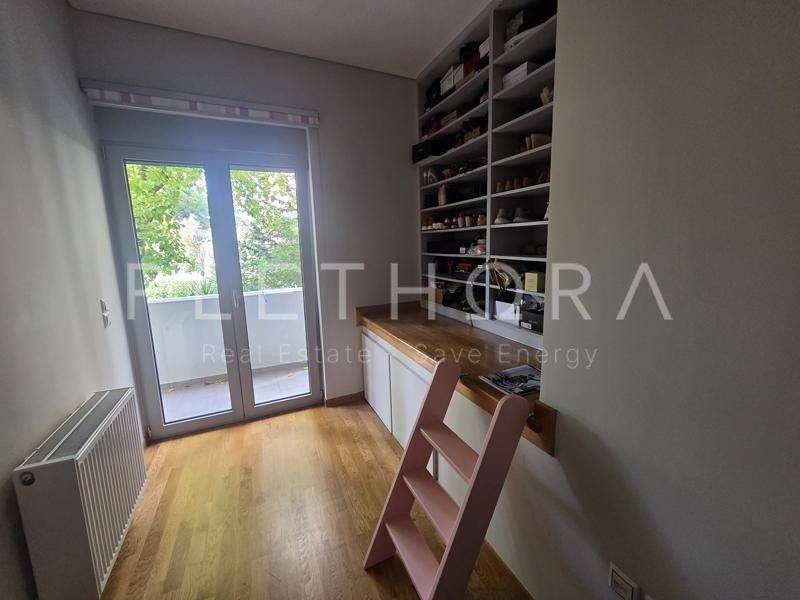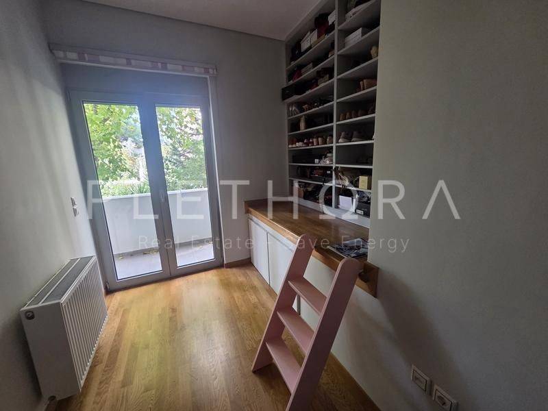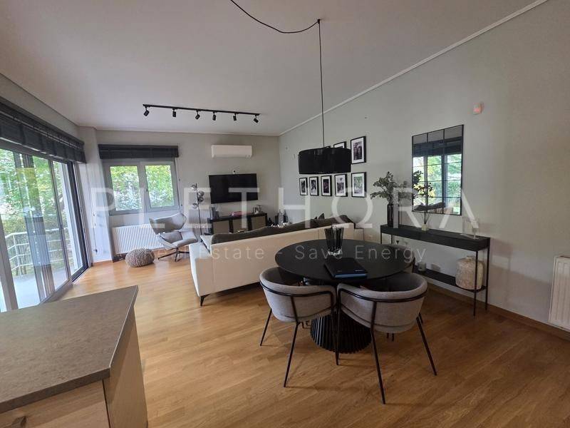 Kifissia, Centre - Tangent Maisonette 122sqm plot 230sqm, fully furnished, bedrooms 3, master bedroom, levels 2, semi-basement - ground floor, excellent condition, year built 2014, energy class B, 2 living rooms, kitchen, 2 bathrooms, heating type: autonomous (natural gas), air condition, parking covered, quiet, dual aspect apartment, luminous, unobstructed view view, painted, drop ceiling, electric roller shutters, storage space, solar heater, external thermal insulation, fireplace, balconies, garden, aluminum frames, double glazed windows, door screen, wood floors, night electricity discount rate, secure door, alarm, surveillance cameras, video doorbell, luxurious, internal staircase, smart home, playroom, cloakroom, guest house, laundry room, pets allowed, within city plan, residential zone, south-eastern orientation, access from asphalt, close to square (up to 500m), close to market (up to 200m), close to metro/train (up to 100m).