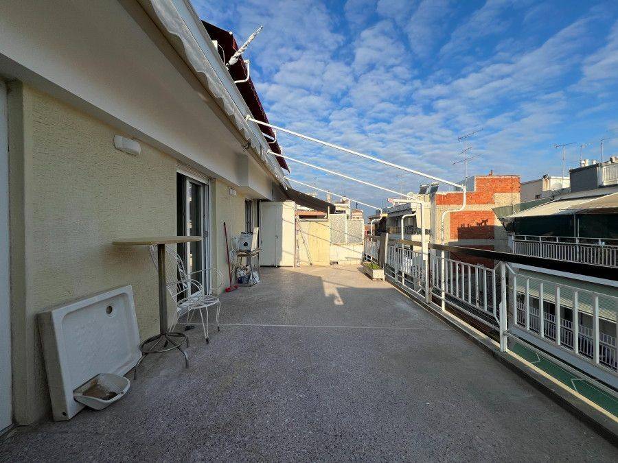 PENTHOUSE renovated in the center of Neapolis (100 meters from the square) at the height of I.N. Agios Georgiou approximately 70m2 (60m2 net), with eastern orientation, airy and sunny in a very privileged position with access to all basic infrastructure. It is located on the 3rd (out of 4) floor of a 1974 apartment building with an elevator that is kept in very good condition. It consists of 2 bedrooms, a separate kitchen, a comfortable living room, a hall and a bathroom with a window. All areas except the kitchen and bathroom have access to the wonderful 40sqm balcony (3.90*10). It has an armored door, awnings along the entire length and width of the balcony, screens on all openings and a small wardrobe in the hall. In addition, it has synthetic double-glazed thermal break windows that significantly limit energy losses, a brand new kitchen was installed (lower section), the living room floor will be scrubbed and polished, while new wooden floors will be installed in the bedrooms immediately. It has oil central heating, but it is relatively economical (50-70€/month heating costs. Contact for advice at 6944373640 Dimitris Dimitriadis.