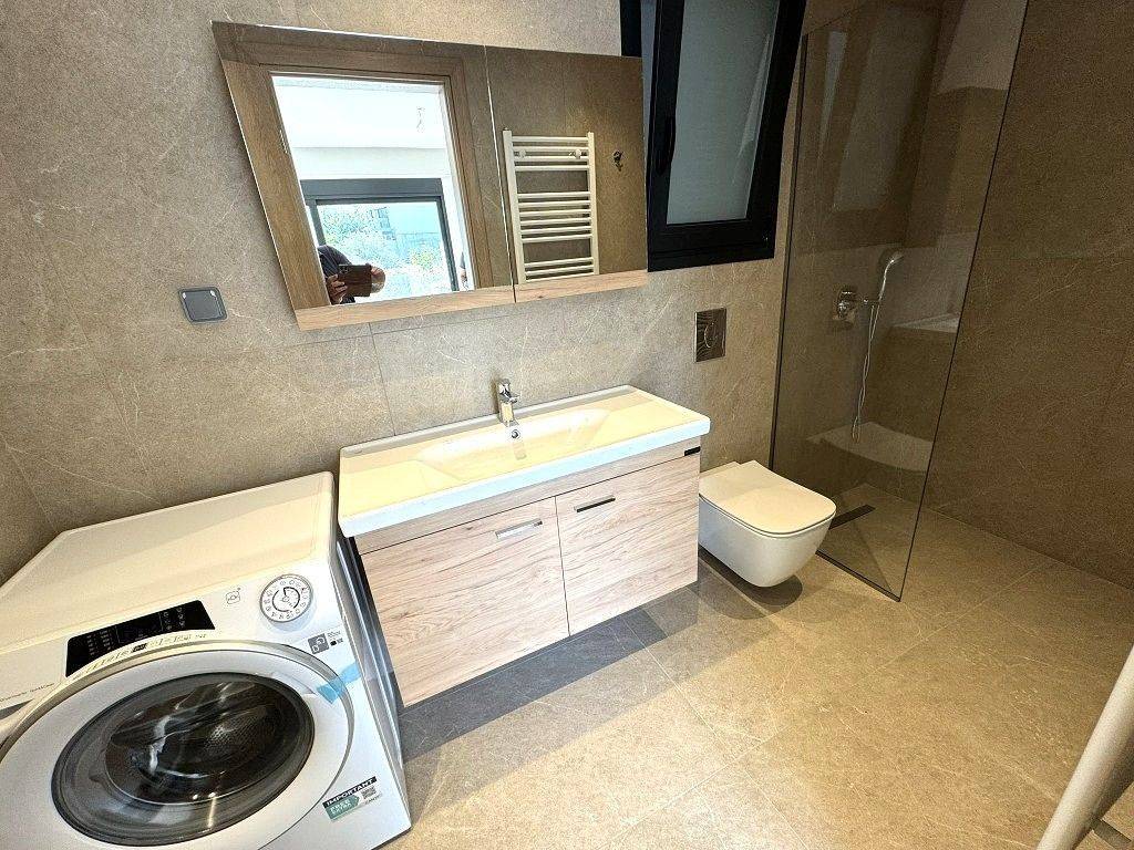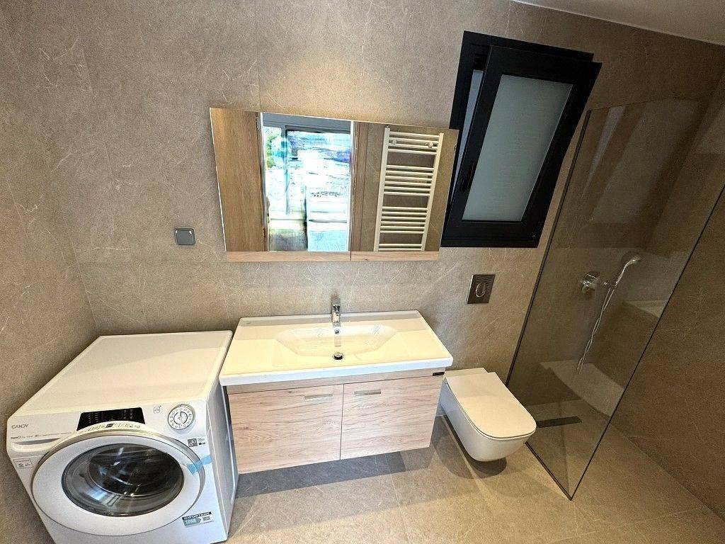 A BRAND-NEW ENERGY-EFFICIENT APARTMENT FOR SALE IN CHALEPA. A first-floor 54 sqm apartment with a spacious open-plan area of a kitchen and living space, one bedroom and one bathroom, large glass walls on the west and south side the that fill the whole house with natural light and two large balconies. The apartment is brand new, it is energy efficient (A+), and part of a very high-end complex with contemporary aesthetics. The apartment is sold with brand new energy-efficient electric appliances (kitchen, fridge, washing machine). It has its own parking space in the basement and a 7,8 sqm storage space also in the basement of the complex. The area of Chalepa where the complex is located is among the most sought-after neighborhoods of the city of Chania, with all sorts of amenities, cafes, the new archaelogical museum, Eleftherios Venizelos' house-museum, Tabakaria  at a close distance. Contact us for a viewing!