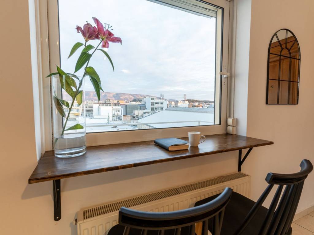 This bright renovated and fully furnished 2-bedroom apartment is located on the 4th floor of a residential building in the historic Academia Platonos, in the heart of Athens. The flat features a spacious layout, modern equipment and a stunning open view of the Acropolis and Lycabettus Hill. Ideal for professionals, couples and international tenants who want a comfortable home with easy access to central Athens. Rooms Bedroom 1 • Double bed • Large Wardrobe • Window with natural light • Fully furnished