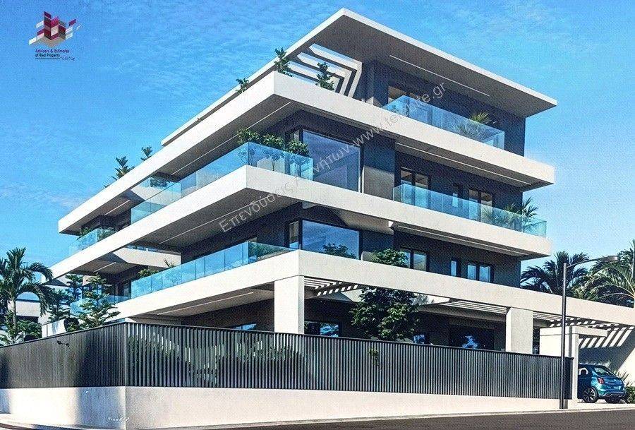 SARONIDA, In a modern, corner building of minimal architecture, where clean geometry meets Mediterranean light, a luxurious penthouse apartment of 95 sq m is available, designed for those seeking quality of life by the sea. The apartment is located on the 2nd floor and enjoys an open sea view, with large glass surfaces that allow natural light to diffuse into every space. The open-plan living room and kitchen area creates an elegant and welcoming environment. It has two comfortable bedrooms and a stylish bathroom, with an emphasis on functionality and modern aesthetics. The spacious terrace, with a glass parapet, functions as a natural extension of the living room, offering an unobstructed view. The construction is of high standards, with a heat pump, boiler, new type of double-glazed windows and screens, ensuring comfort and energy efficiency. The property is complemented by a storage room, a parking space in a garage and an elevator. Just 800 meters from the sea, in a quiet residential area, it is an ideal choice for both permanent residence and for holiday or investment use, combining modern lifestyle, minimal luxury and a privileged location. price 410.000€, code 21067 , ADVISERS & ESTIMATES OF REAL PROPERTY, 210-9614621, 6977-380335, www.telebite.gr