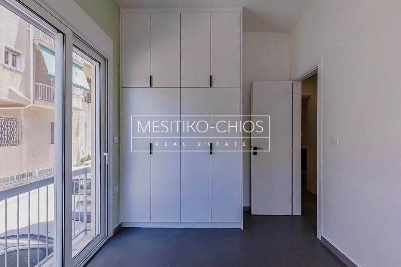In one of Athens' most vibrant and strategically located neighborhoods, Neos Kosmos, an impressive raised ground-floor corner apartment is available for sale, radiating freshness and modern aesthetics. The extensive renovation has created a stunning open-plan area where the spacious, light-filled living room meets a fully equipped kitchen with a signature island, perfect for entertaining and daily comfort. The property features two comfortable and exceptionally bright bedrooms with built-in wardrobes, a modern main bathroom, and an additional guest WC. Security and functionality are top priorities, as the apartment comes equipped with pre-installations for both an alarm system and air conditioning throughout.