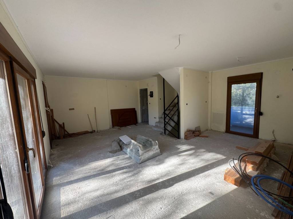 Διατίθεται προς πώληση τριώροφη ημιτελής κατοικία 131,58τ.μ. με κήπο(αποκλειστική χρήση) 70,57τ.μ.Αποτελείται από τέσσερα υπνοδωμάτια,δυο σαλόνια,δυο κουζίνες,δυο μπάνια και ένα w.c. Η πόρτα εισόδου είναι ασφαλείας,θωρακισμένη στο χρώμα του ξύλου,τα εξωτερικά κουφώματα είναι συνθετικά στο χρώμα του ξύλου με διπλούς υαλοπίνακες.Για την θέρμανση υπάρχει ατομικός καυστήρας πετρελαίου,με ξεχωριστό θερμαστάτη σε κάθε όροφο.Επιπλέον,οι εξωτερικοί τοίχοι είναι διπλοί με 10εκ. θερμομόνωση,η στέγη είναι ξύλινη με 15εκ. θερμομόνωση και τοποθετήθηκε ηλιακός θερμοσίφωνας 125 λίτρων.Η άδεια οικοδομής εκδόθηκε το 2005 και η κατασκευή ξεκίνησε το 2010.Τέλος η αποπληρωμή μπορεί να γίνει με διακανονισμό.