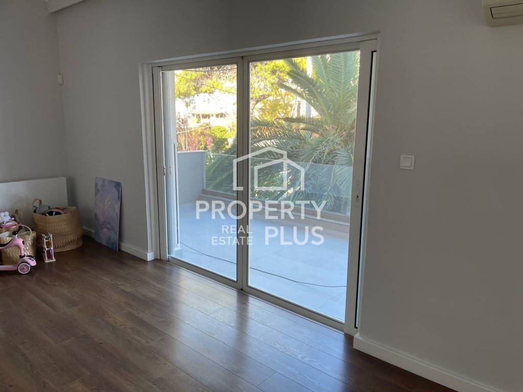 In a particularly quiet area of Kifisia, a 130 sq.m. upper-floor apartment in a small two-story building, built in 1980 and fully renovated in 2021. Located on a high 1st floor, it is cross-ventilated and exceptionally bright, offering spacious and functional living areas. It comprises a generous reception area, closed kitchen, 3 bedrooms, and 2 bathrooms. The apartment features an alarm system, security door, independent natural gas heating with its own boiler, solar water heater, air conditioning, a storage room, and 1 pilotis parking space.