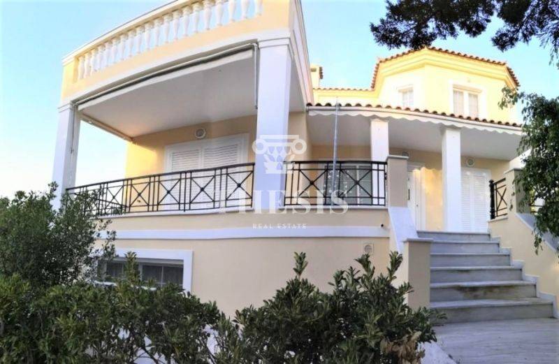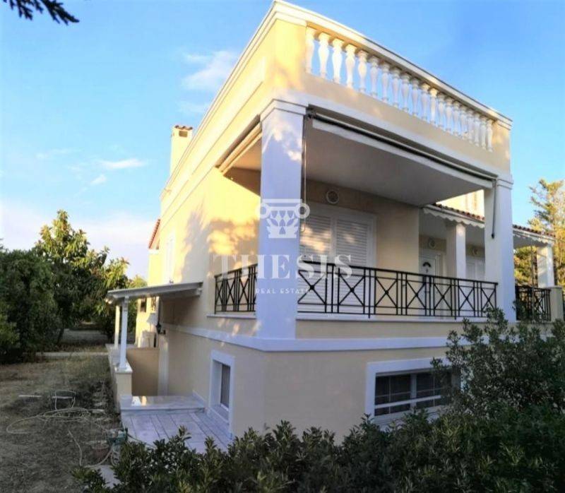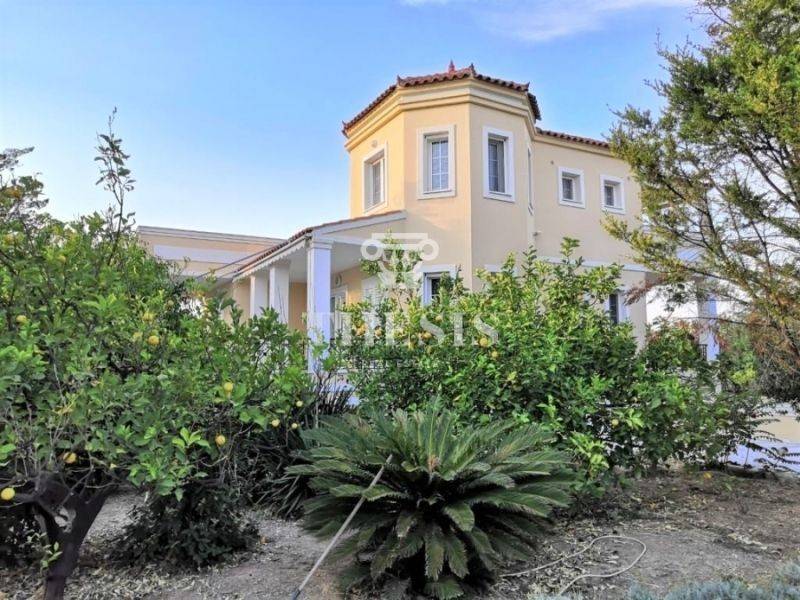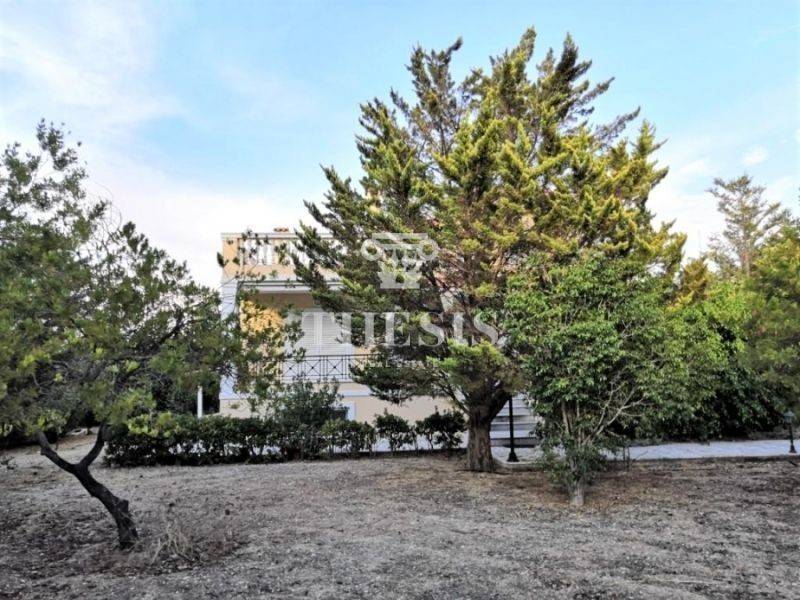 Property code: 833480 - Aegina Center FOR SALE 3-level villa (semi-basement 80 sq.m. Ground floor - 1st floor 137 sq.m.) total area 217 sq.m. on a plot of 4000 sq.m. The property is only 100 meters from the sea of ​​the island. It consists of 3 bedrooms, living room, kitchen, 2 bathrooms and WC. It was built in 1997 and has aluminum frames, a security door, built-in wardrobes, a fireplace, double glazing, entrance steps, an internal staircase, parking, large terraces with tiled roofs and an external warehouse of 20 sq.m.The villa has a beautiful private garden, full of fruit and ornamental trees, while the entrance to the courtyard is an automatically opening gate. The distance from the port of Aegina is only 1 kilometer. - Price: €880,000