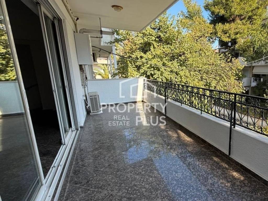 In a quiet area of Nea Filothei, Marousi, a 103 sq.m. first-floor apartment in a small building without an elevator. It features a spacious and bright reception area, a separate kitchen with a counter opening to the living room, 3 bedrooms, and 2 full bathrooms. The apartment offers front and rear balconies, aluminum frames with double glazing, granite floors throughout, independent heating with a dedicated natural gas boiler, and additional storage space.