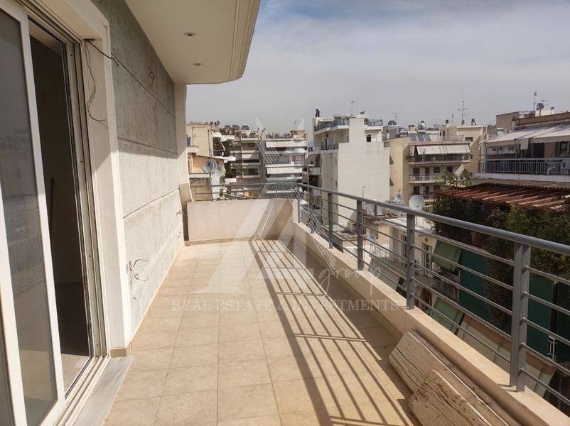 Nea Smyrni - Apartment 120sqm bedrooms 3, master bedroom, levels 1, 6-7th (165sqm), very good condition, year built 2007, energy class under issuance, living room, kitchen, 3 bathrooms, heating type: autonomous, heating medium natural gas, parking covered, quiet, dual aspect apartment, luminous, corner, view unobstructed view, frontage, painted, storage space, solar heater, fireplace, balconies, elevator, frames aluminum, double glazed windows, door screen, floor type ceramic tiles, secure door, alarm, video doorbell, residential zone, south-western orientation.