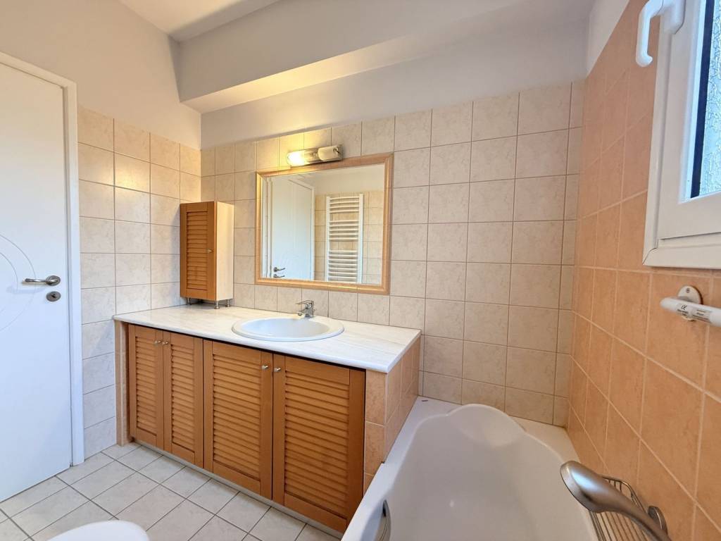 Excellent, 1st floor, 115 s.q.m flat apartment is available for rent in Gerakas area. The year of construction was 2005 and the apartment was renovated in 2025. The apartment is in excellent condition. It is bright, and located in a beautiful and quiet neighbourhood. It has access to public transport, and is close to schools and shops. Ideal for a couple or a family, it consists of a spacious living room with a fireplace and a comfortable open-plan kitchen, fully equipped with ceramic hobs, an oven, and a dishwasher, both Miele. The apartment has two comfortable bedrooms and a third smaller one, suitable for an office. The floors in the living room and kitchen are tiled, while the bedroom floors are wooden. There are one master bathroom and one guest bathroom. Air conditioning is available in the living room and in the big bedroom. The balcony is spacious and ideal for relaxation. Finally, the property features an alarm system, security door, aluminum frames and double glazing. Gerakas is a municipal community and the seat of the Municipality of Pallini in the Regional Unit of East Attica of the Attica Region. It belongs to the Northeastern edge of the Urban Complex of Athens and is a Northern Suburb of Athens. The population of the area amounts to 30,000, the area covers 11 sq. km, and the density is 2,722 inhabitants per sq. km according to the 2011 census. Known neighborhoods of Gerakas include Gargittos, Stavros, and Balana. It borders Agia Paraskevi, Penteli, and Chalandri. It is a suburb that has experienced rapid development in recent years. With the passage of the Attiki Odos and the metro, it has completely transformed into an urban area of Athens, along with the simultaneous modernization of its infrastructure. In the northwestern part of the area lies the hill of Koufos (at the foothills of the observatory) at the borders with the Pentelic settlement of Agios Dimitrios. Gerakas is being developed rapidly after the installation of the Doukissis Plakentias metro station, without losing its urban beauty. By law, houses are only constructed with tiled roofs, there are many parks, and overall it constitutes a beautiful environment for families with children.