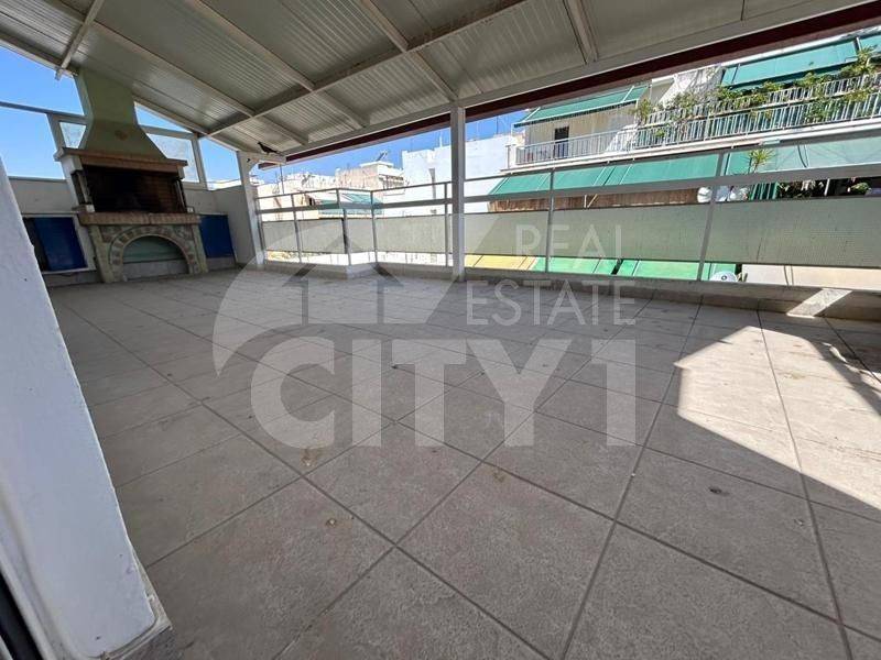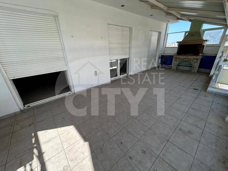 Attica - Floor Apartment 92sqm unfurnished, bedrooms 2, levels 1, 4th, renovated, year built 1970, energy class E, living room, hall, kitchen, bathroom, heating type: autonomous (air condition), quiet, dual aspect apartment, luminous, unobstructed view view, frontage, painted, storage space 1sqm, fireplace, balconies, large balconies, balcony 24sqm, tents, elevator, aluminum frames, double glazed windows, ceramic tiles floors, secure door, pets allowed, residential zone, east-western orientation, investment property, close to metro/train (up to 100m), close to στάση λεωφορείου/τρόλεϋ (up to 0).