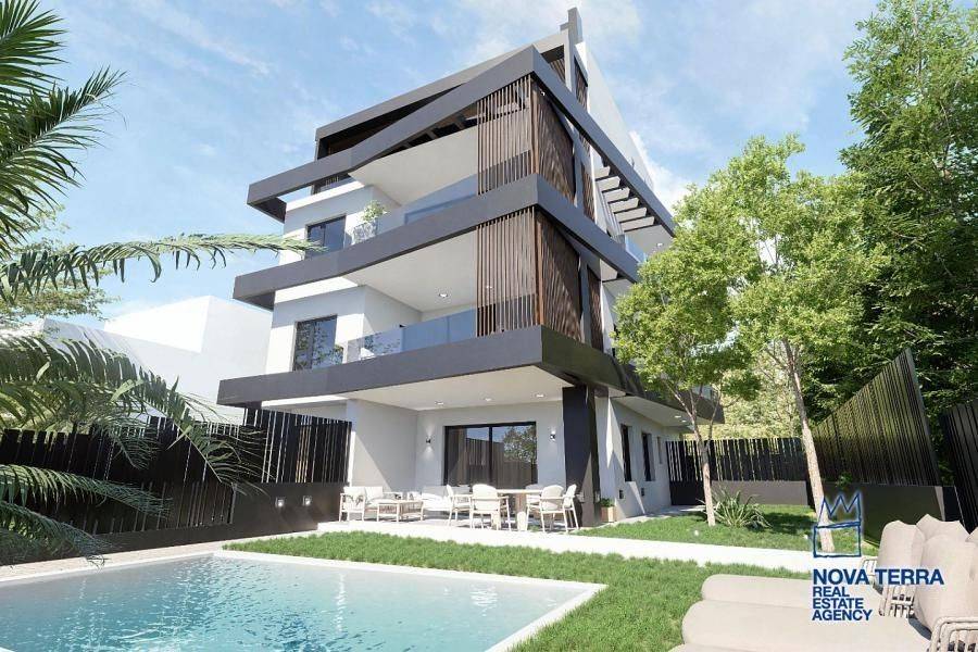 VOULA - DIKIGORIKA, Single Floor Apartment,, Sale, 120.7 sq.m, year built 2025, 3 rooms, 1st, Various Characteristics: Balcony, Bath (2), Escalator, Fire Place, Kitchen, Living room, Store Room, Swimming Pool, Toilet, Flooring: Tile, Wooden floor, Heating: Floor heating, Heating pump, Access road, Aluminium panels, Boiler, Bright, Double-glazing, From Side to Side, Luxury, Newly built, Night charge, Residential area, Security Door, Solar Heating, In perfect condition: Pets allowed: Satellite dish: Parking area: Parking, Energy class: A. property ID: 52481, www.nova-terra.gr