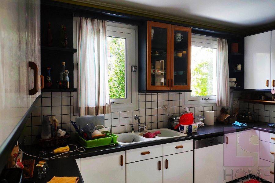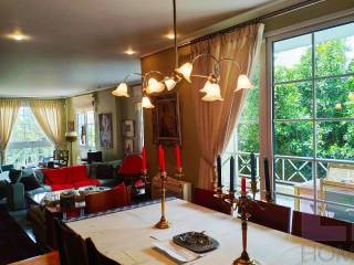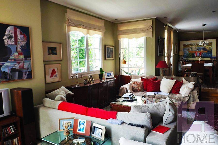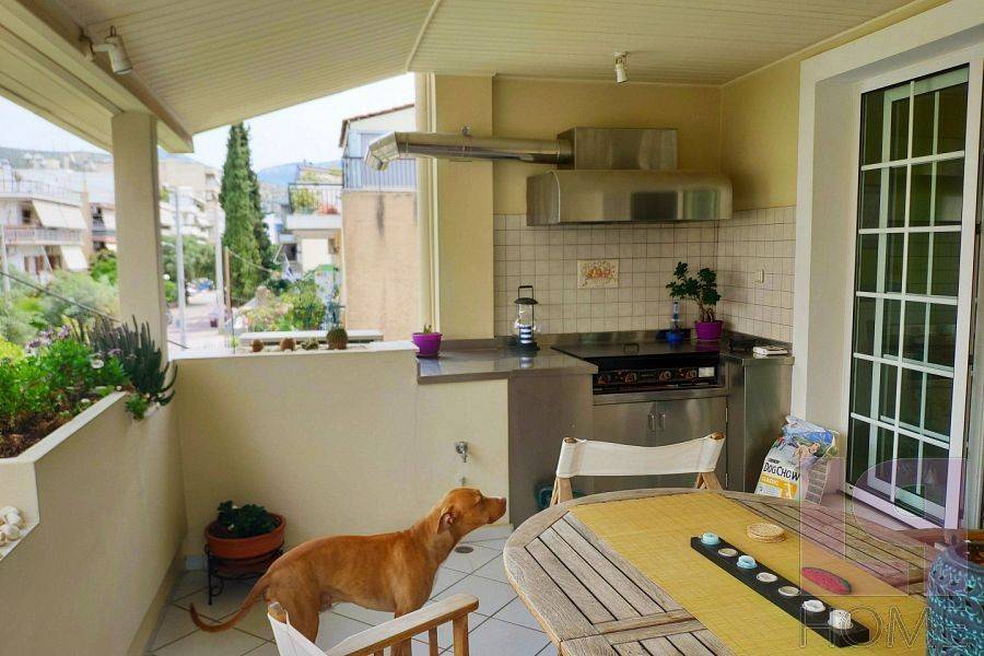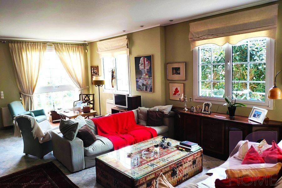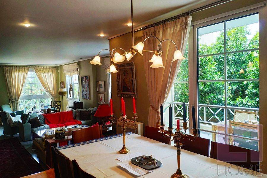 An amazing 2- level apartment of 270 m2, in a 3- floor building, with a beautiful garden (common use) and large verandas, very bright and airy and in a perfect condition (built in 1998). It is located in an excellent neighbourhood in Elliniko, on a quiet street, yet very close to Vouliagmenis and Alimou Avenues and only 800 m. from Argyroupoli metro station. The apartment provides 3 bedrooms, a very large living- room with a dining area, an extra sitting- room with a beautiful fireplace, a separate, quite spacious kitchen, 2 bathrooms- one with a Jacuzzi, an attic, a studio with an independent entrance, large verandas with electric BBQ, a storage room, underground parking spots and an elevator with direct access to the apartment. The heating system is autonomous oil.