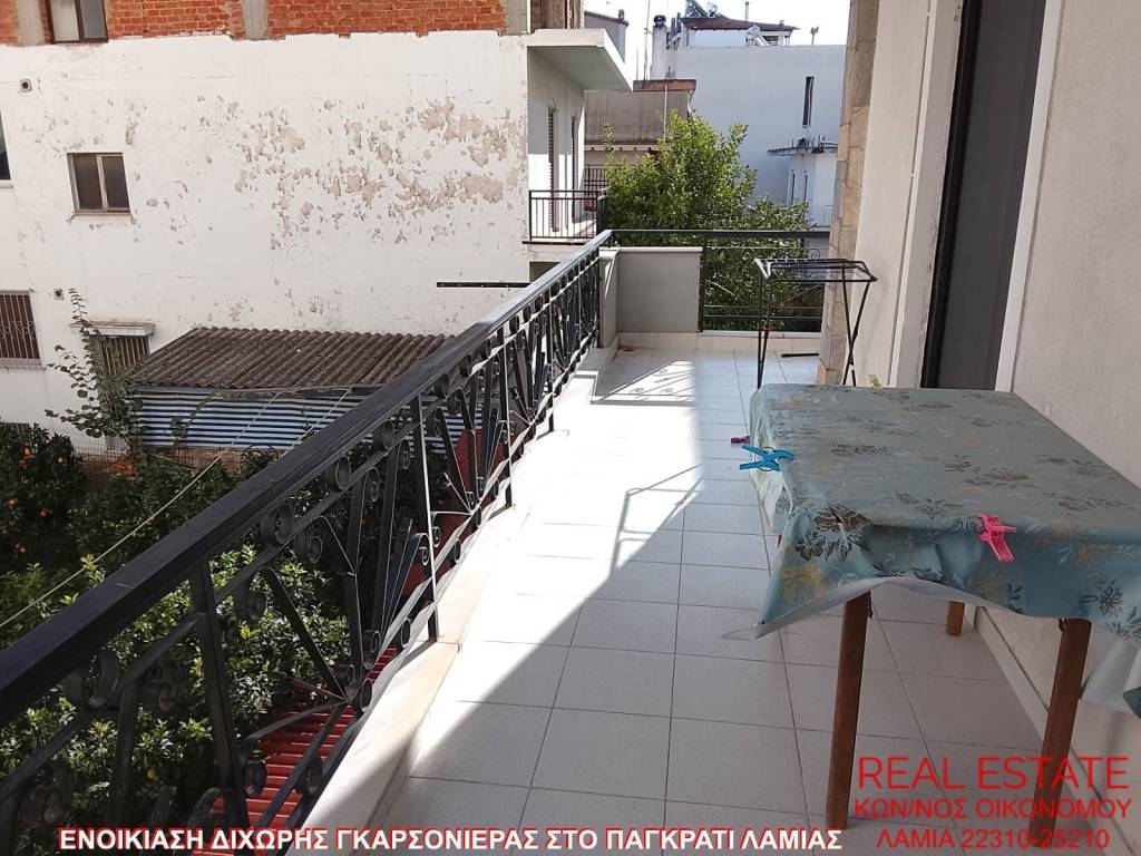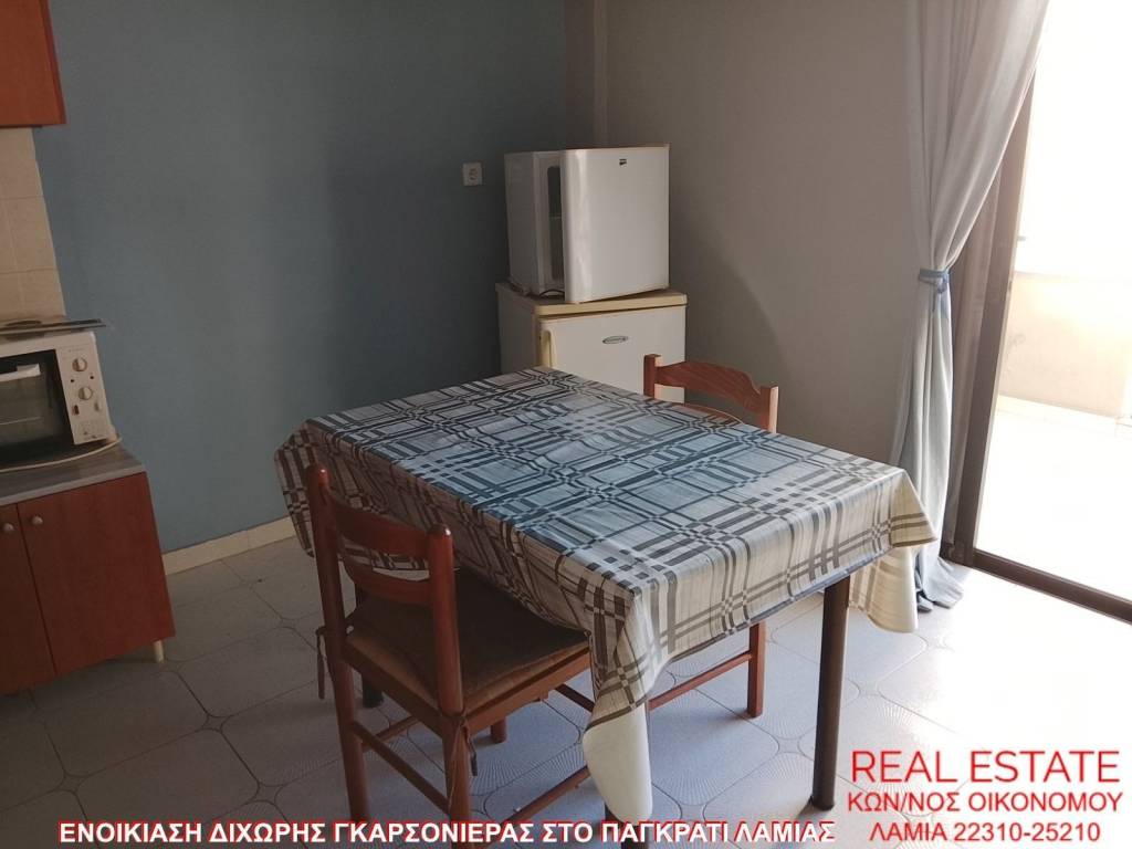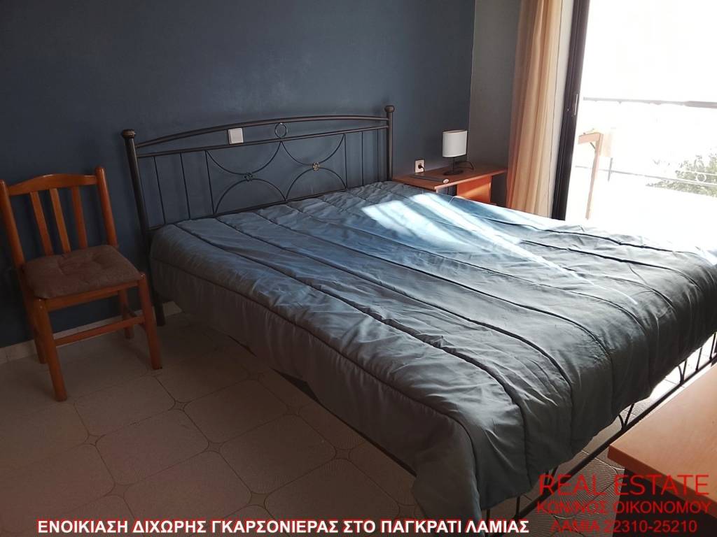 Studio for rent, in Pagrati, Lamia. It is 46 sq.m., 1st floor, fully furnished and bright. It has a kitchen, a bedroom, a bathroom and w/c. It has inverter air conditioning, aluminum frames, double glazing, screens and a terrace. It is located near the Lamia Military Camp and is without an elevator. Rental price 280 euros.