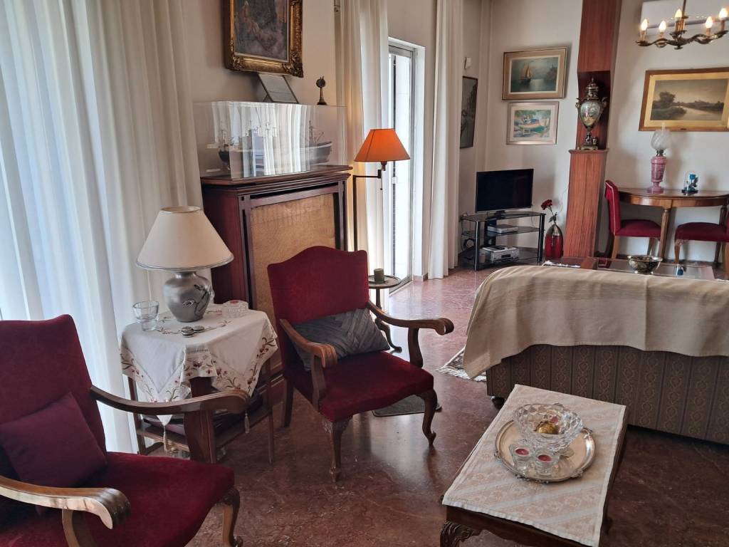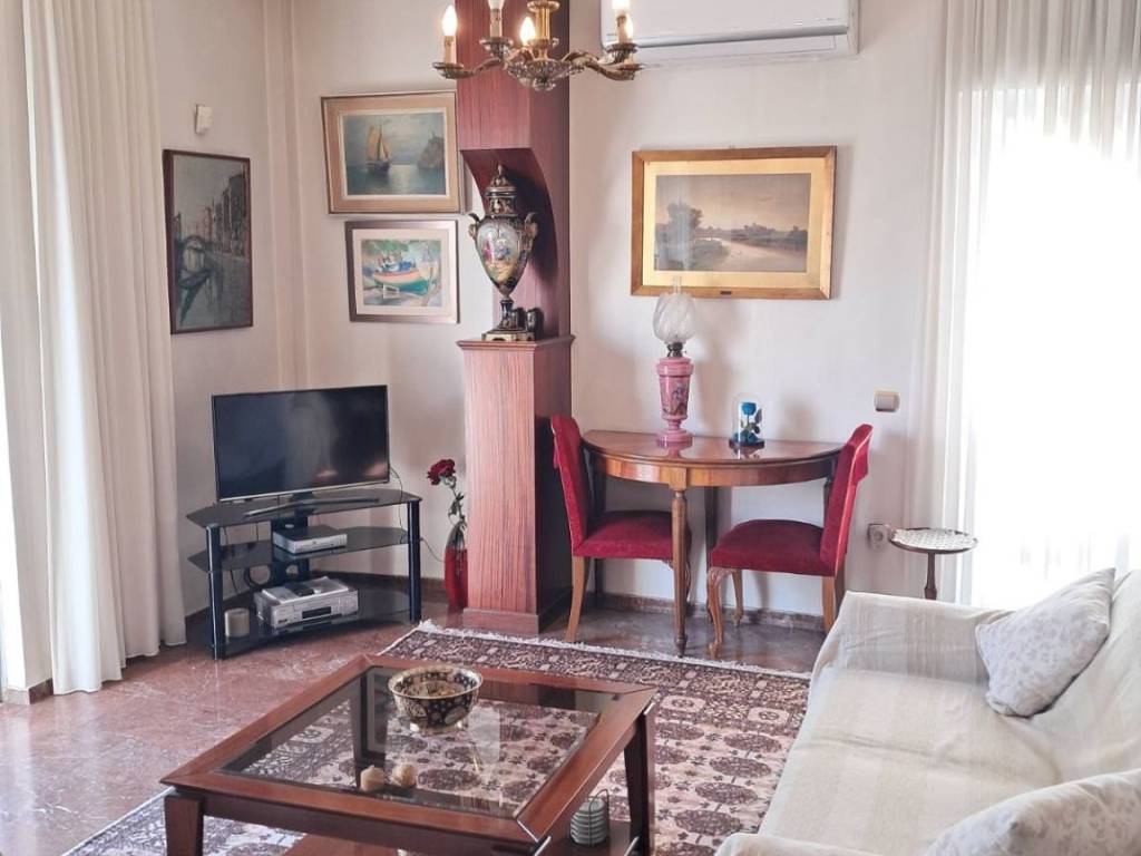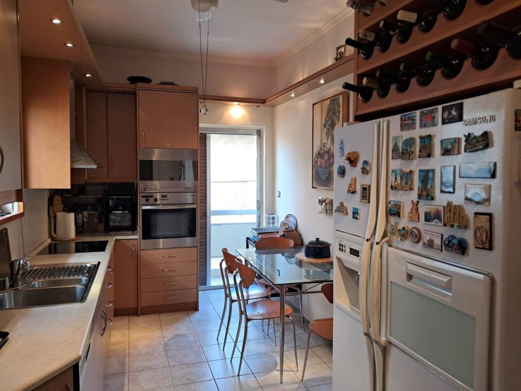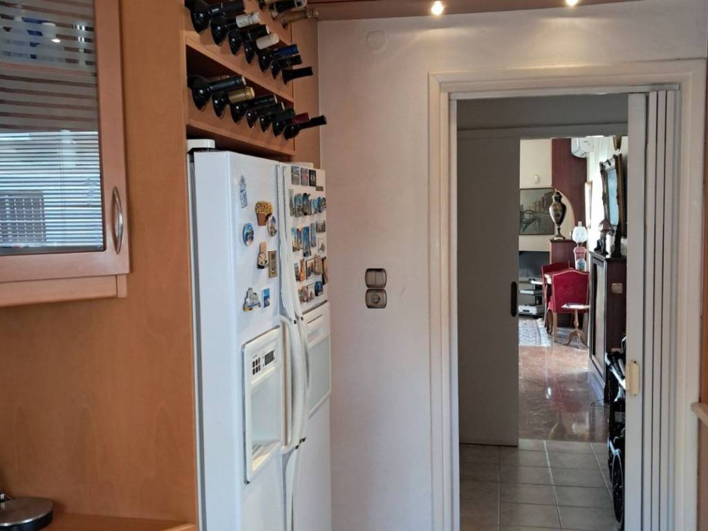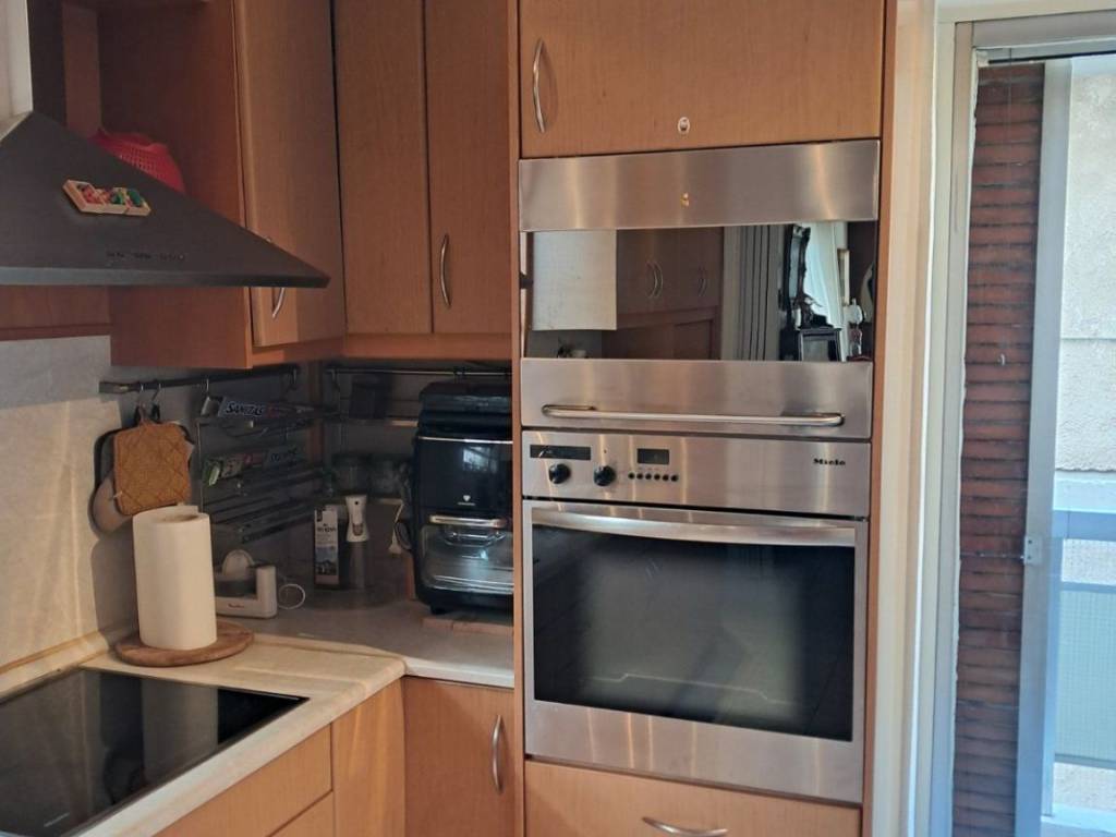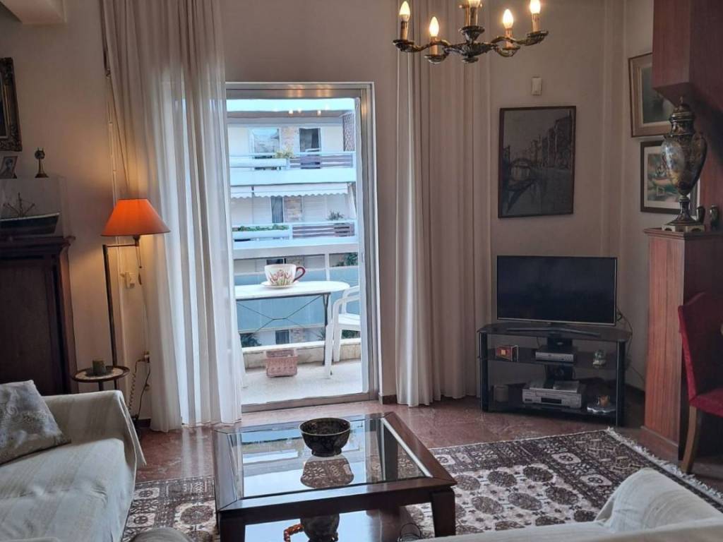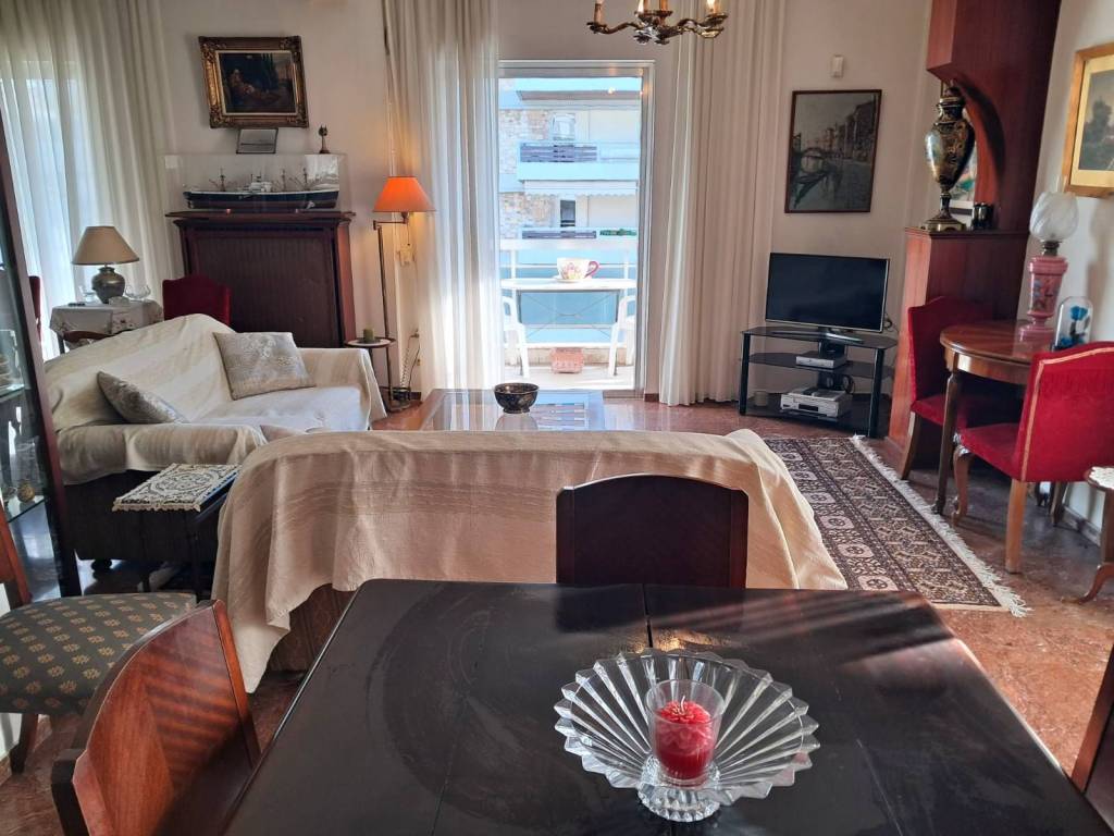 Nea Smyrni, Alsos area, city center — FOR SALE a floor-through apartment with a total surface of 134 sq.m, located on the 5th floor of a family apartment building. Built in 1975, it consists of 3 bedrooms, 1 very large open-plan living room, a separate renovated kitchen with built-in appliances (Samsung refrigerator, Miele cooker, Pitsos dishwasher, microwave oven, washing machine — all included in the price), 1 bathroom, 1 renovated WC, 2 loft storage spaces, 1 internal storage room, and numerous additional storage areas. The apartment features 2 security doors, a solar water heater, heating via storage heaters, air conditioning, a central (inactive) natural gas supply, three-phase night electricity, high-quality marble and parquet floors, wraparound balconies, awnings, an alarm system, and immediate access to public transportation. Pets are allowed. The property requires minimal improvements. It is available fully furnished or partially furnished, with solid wood furniture. Price negotiable. Real estate agents excluded.