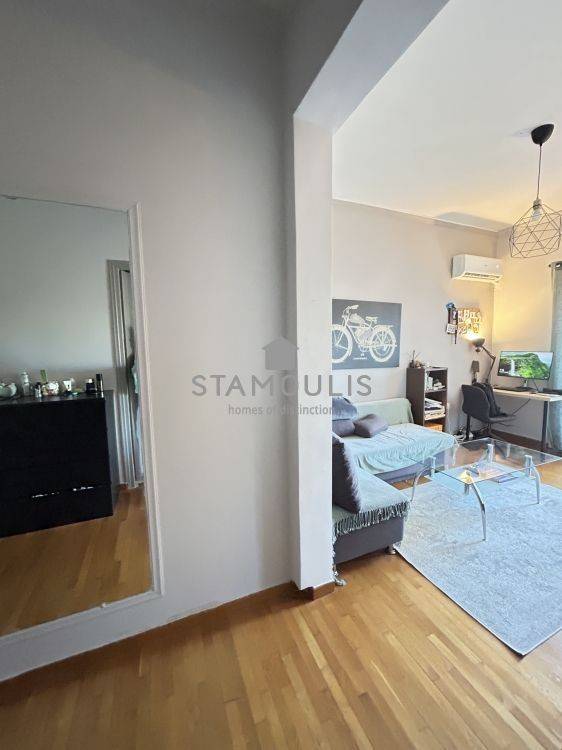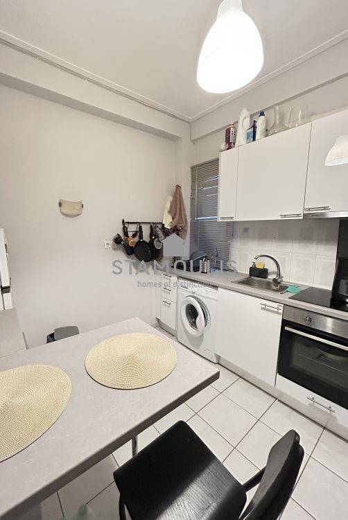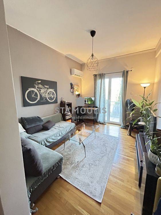 Fully furnished and renovated apartment 53 sq.m, 2nd floor, in Villa Kazouli, with easy access to the subway and shops. It has 1 bedroom, bathroom, bright living room with a balcony, functional kitchen with built-in appliances, oak flooring, aluminum windows with double glazing and screens, air condition, security door and heating with natural gas.