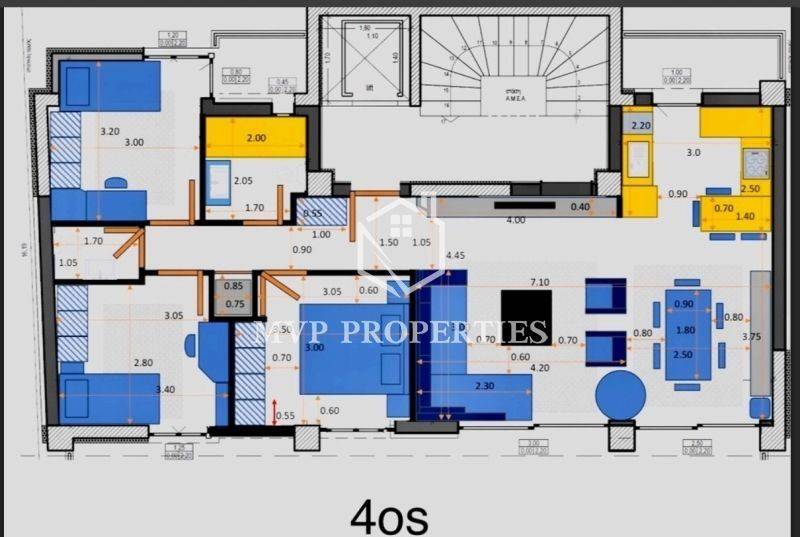 Excellent apartment, fourth floor, modern and luxurious construction, total area 125 sq m gross and 95 sq m net, in the area of Kalamaria. The property, which is under construction, is of energy class A+, is located close to a bus stop, bakery, local market, as well as a super market and schools, while its distance from the metro stop is only 300 meters. It is bright, airy and sunny. Its layout consists of a spacious open-plan living room and kitchen, three bedrooms, a master bathroom, which will have a modern design shower and a wc, for the needs of visitors. The floors are planned to be covered with high-quality granite tiles, the external frames will be sliding aluminum, heavy-duty, double glazed, equipped with mosquito nets and the entrance door will be security armored one. The heating of the property will be achieved by using a heat pump. The complete installation of fire detection and video intercom is planned, as well as the pre-installation of an alarm and air conditioning. An exclusive parking space in the building's pilot house, as well as a storage room in the basement will belong to the apartment. Finally, an independent supply for charging an electric car will be installed on the ground floor. The completion of the property is expected in mid-2027.