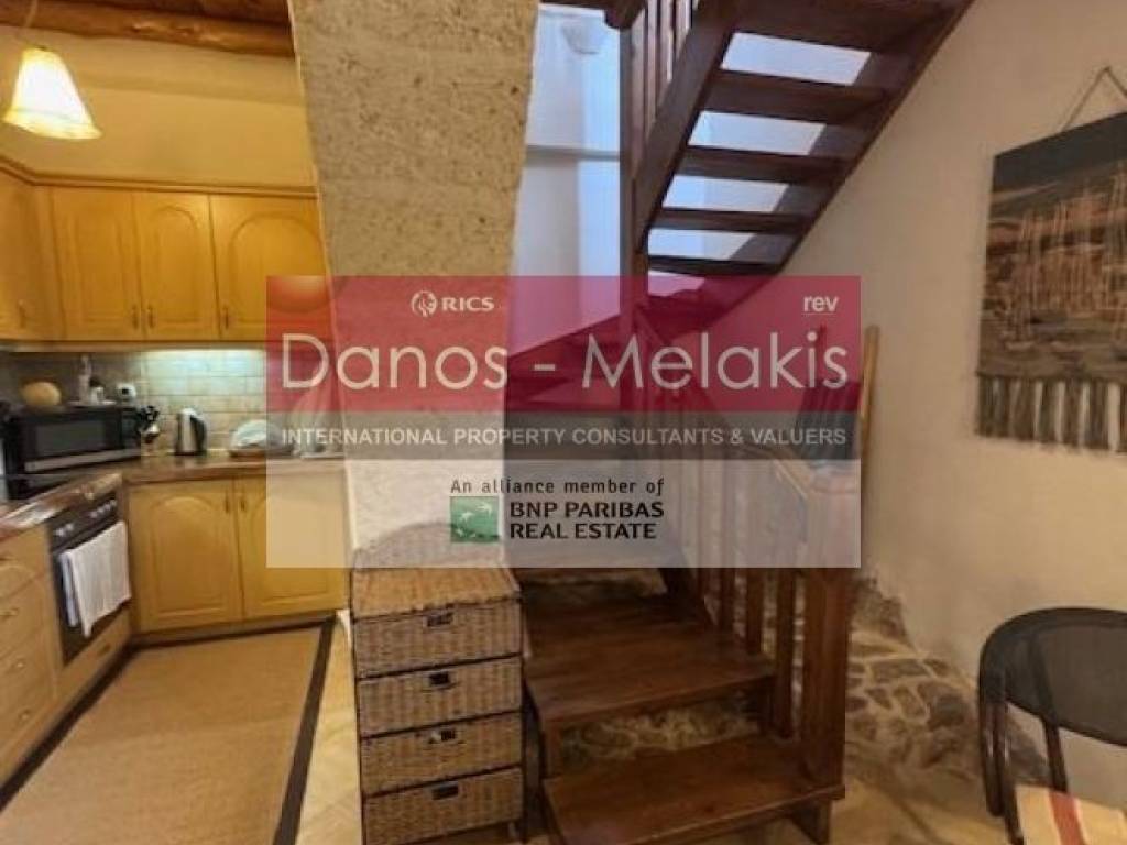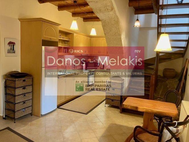 Maisonette with views of the White Mountains in Souri, Apokoronas. This spacious 2-3 bedroom 1-bath traditional Cretan village house of 122.54 sq.m. is located in the traditional village of Souri Apokoronas and offers a calm and authentic way of life on the beautiful island of Crete.The kitchen/salon boasts an original 200-year old stone arch spanning the length of the room. This village house is located on a plot of 223 sq.m. fenced and offers unobstructed views and plenty of space for garden and parking. Upon entering the house, the lower level welcomes you to an open plan living/dining and kitchen area, filled with natural light and the terrace through patio doors, and two comfortable bedrooms. The kitchen has a ‘live-edge’ wood countertop and is fully equipped with storage cupboards. Upstairs, the upper level houses a large open space, which can function as a bedroom or office or living room depending on the owner's needs. With access to the balcony where one can relax and enjoy the amazing view. In addition to its attractive features, this property is conveniently located close to all amenities and a short distance from the beach, making it an ideal permanent residence or rental. Souri is a lively and quite village, open all year round and a short distance away offers well-stocked mini markets, traditional taverns serving delicious Cretan dishes and cozy cafes. Just 5 kilometers away is the larger town of Vamos, which provides basic amenities such as a 24-hour health center, banks, health professionals, schools, gas stations and more.